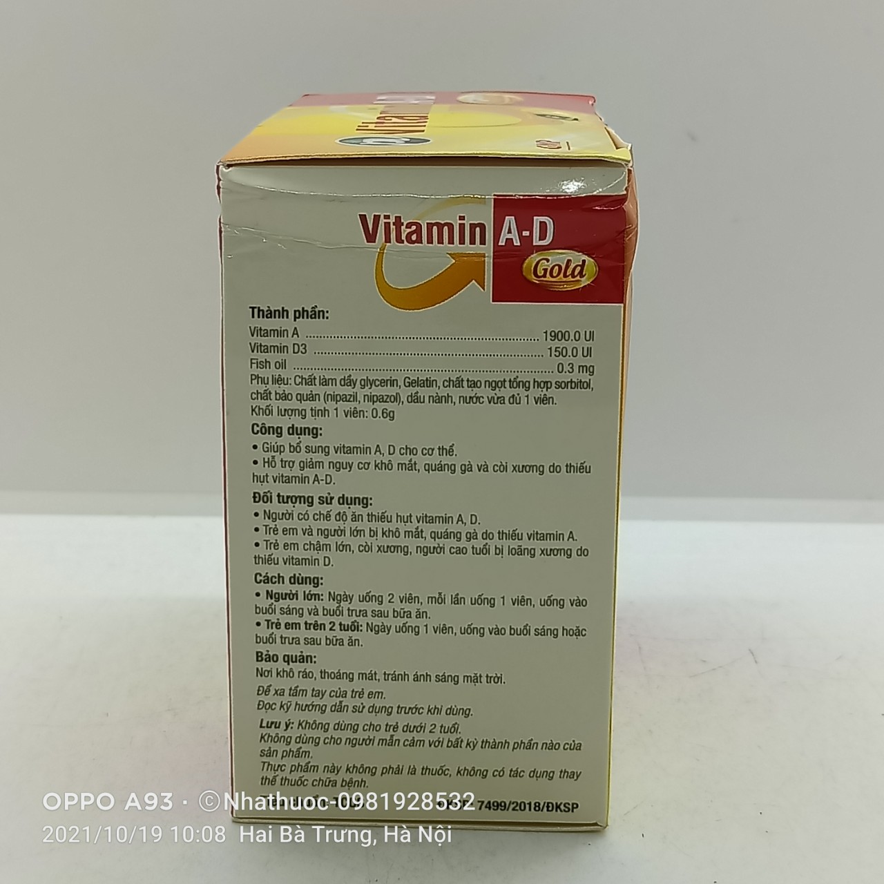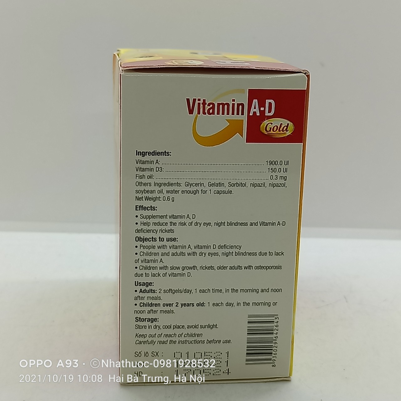 [Chính hãng] VITAMIN A-D GOLD PV HỘP 100 VIÊN NANG MỀM