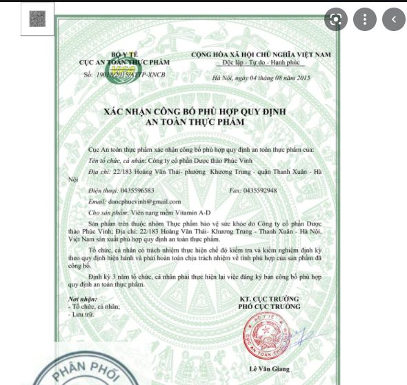 Sản xuất: Công ty cổ phần dược phúc vinh