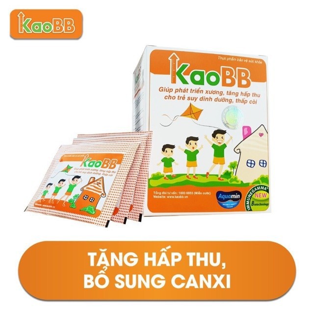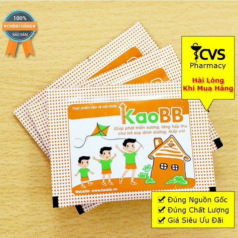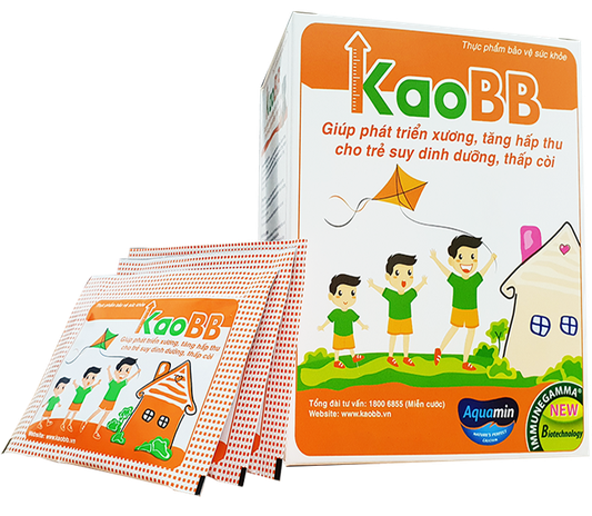 Công Dụng Cốm KaoBB:- Sản phẩm giúp cung cấp Canxi, Magie, Vitamin D3, Kẽm cũng như một số dưỡng chất thiết yếu giúp tăng cường hấp thu chất dinh dưỡng- Cốm KaoBB Giúp trẻ phát triển xương, phòng chống còi xương, suy dinh dưỡng cho trẻ