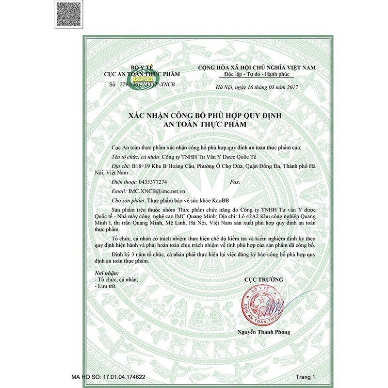 Nhà sản xuất: Công ty TNHH Tư Vấn Y Dược Quốc Tế (IMC)Xuất xứ: Việt Nam