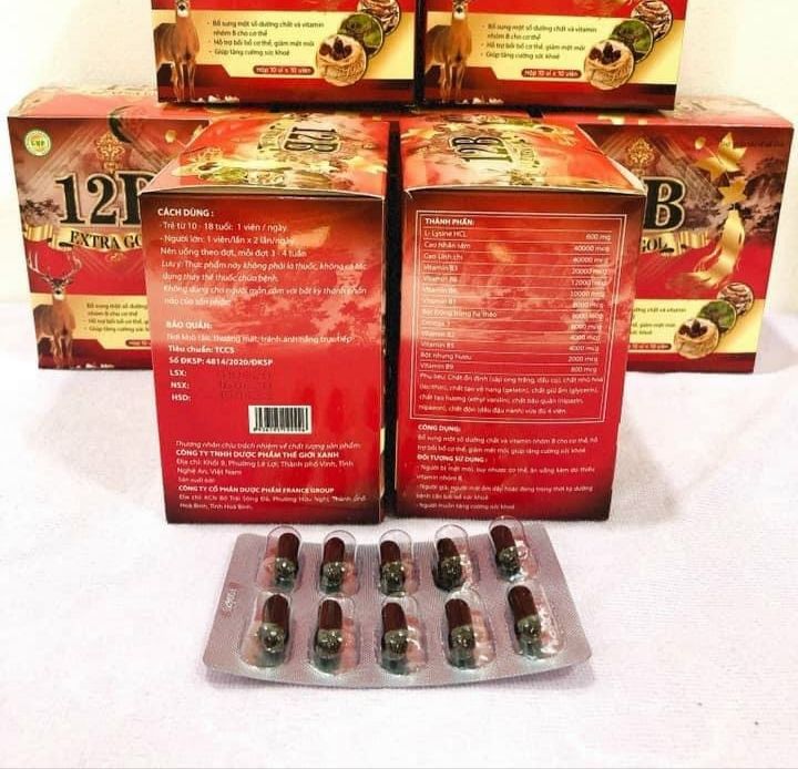 VIÊN BỔ NHÂN SÂM 12b WITH GINSENG – BỔ SUNG VITAMIN, BỒI BỔ CƠ THỂ, NÂNG CAO THỂ LỰC VÀ TRÍ LỰC ✅ THÀNH PHẦN:• Vitamin B1, B2, B5, B6, B12, Gingseng extract, Linzhi extract, Nhung ươu, Đông trùng hạ thảo, Betaglucan, Sữ ong chúa✅ CÔNG DỤNG:• Giúp bồi bổ sức khỏe, kích thích tiêu hóa ăn ngon miệng, tăng cường miễn dịch cơ thể, nâng cao thể lực và trí lực• Tăng cưlực trong các tình trạng suy nhược cơ thể, mệt mỏi, chán ăn, thời kỳ dưỡng bệnh, sau phẫu thuật✅ ĐỐI TƯỢNG SỬ DỤNG:• Người suy nhược cơ thể, gầy mòn, thiếu máu, mệt mỏi, chán ăn, thời kỳ dưỡng bệnh, sau phẫu thuật• Người mắc các bệnh mãn tính, xơ vữa động mạch, bệnh của người có tuổi, chân tay tê phù, đau dây thần kinh• Các tình trạng căng thẳng quá độ, lo âu, làm việc trí óc✅ CÁCH DÙNG:• Người lớn và trẻ em > 6 tuổi: Uống 1 viên/lần, 2 lần/ngày • Trẻ em < 6 tuổi: Ngày uống 1 viên✅ QUY CÁCH SẢN PHẨM:• Hộp 10 vỉ x 10 viên nang mềm✅ HẠN SỬ DỤNG: • Vui lòng xem trên bao bì sản phẩm!