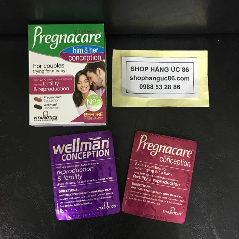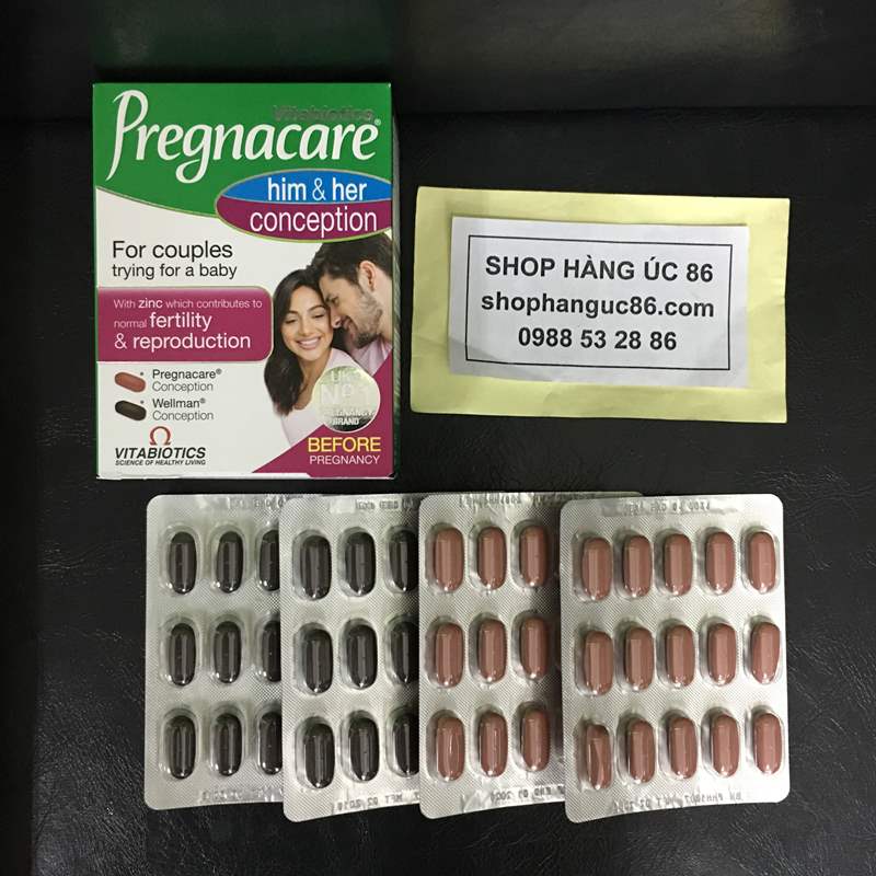 Viên Dễ Thụ Thai - Vitabiotics Pregnacare him & her conception - tăng tỉ lệ thụ thai cao gấp 2 lần ( Vitamin bầu / Vitamin t��