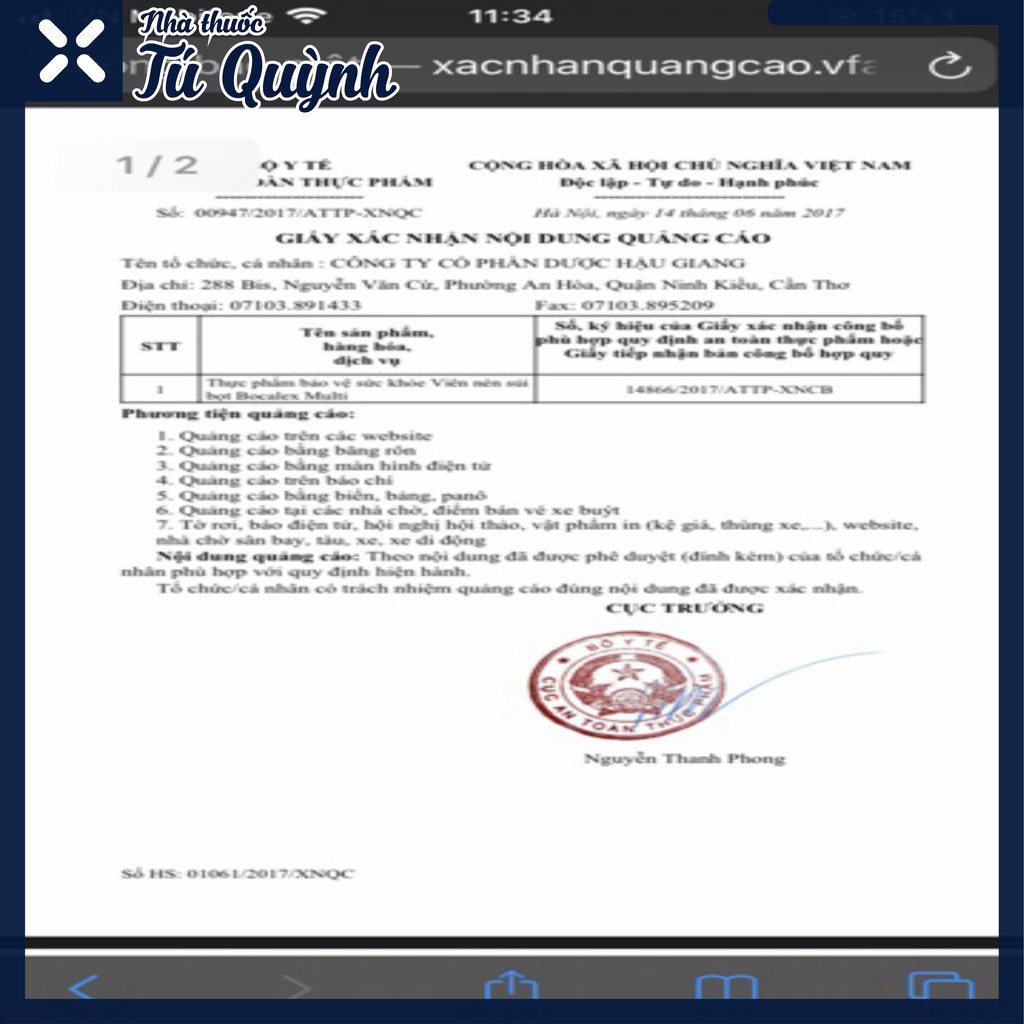 Viên Sủi Bocalex C Tăng Đề Kháng Mùa DịchThành PhầnVitamin C 1000Mg.Tá Dược: Acid Citric Khan, Natri Saccharin, Aspartam, Natri Bica 25.000đ