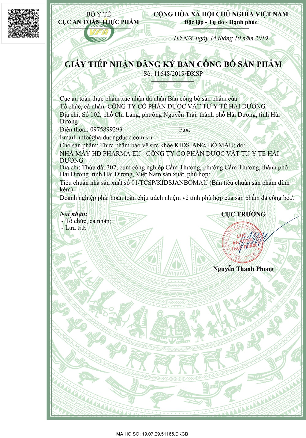 THÔNG TIN CHUNG KIDSJAN BỔ MÁU