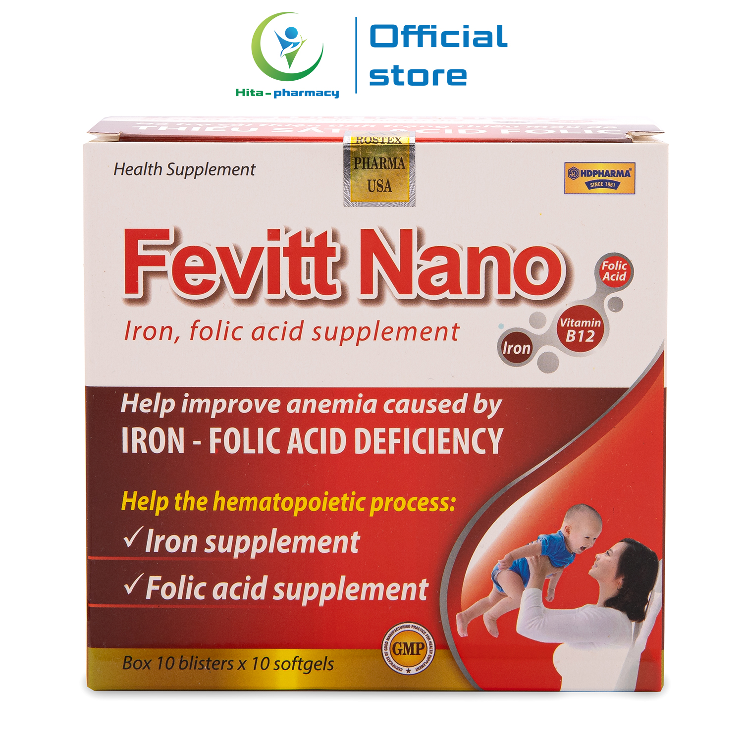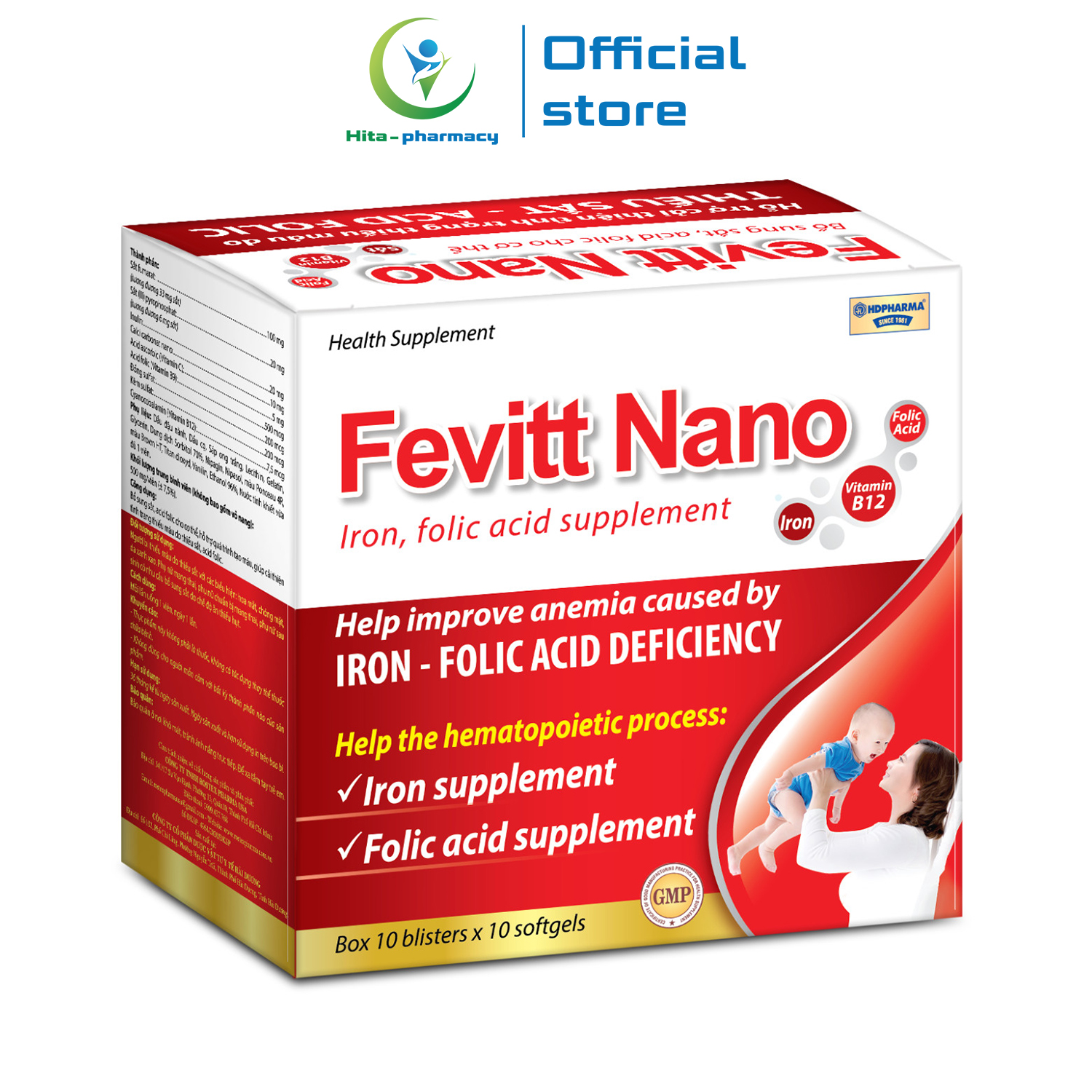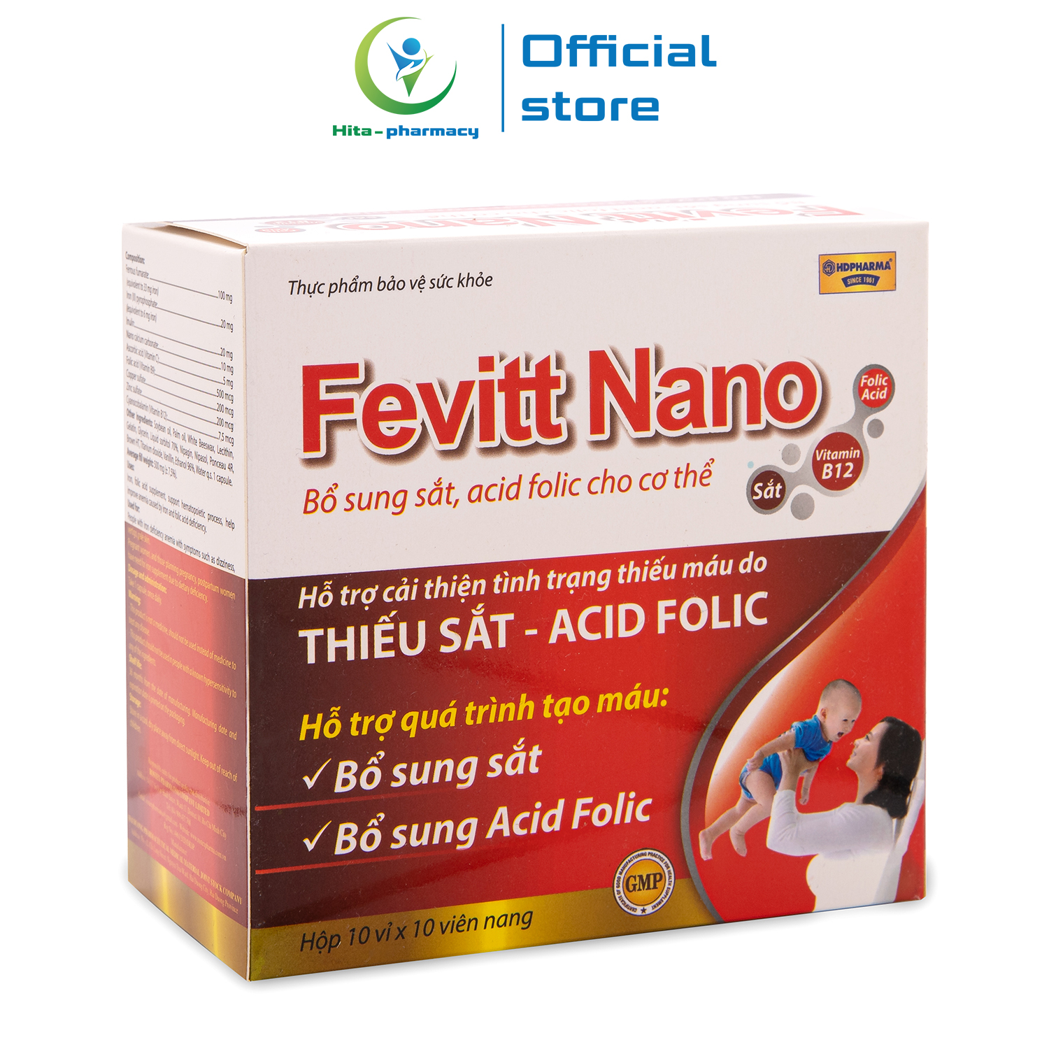 - Fevitt Nano Bổ sung sắt, Acid folic cho cơ thể, hỗ trợ quá trình tạo máu
