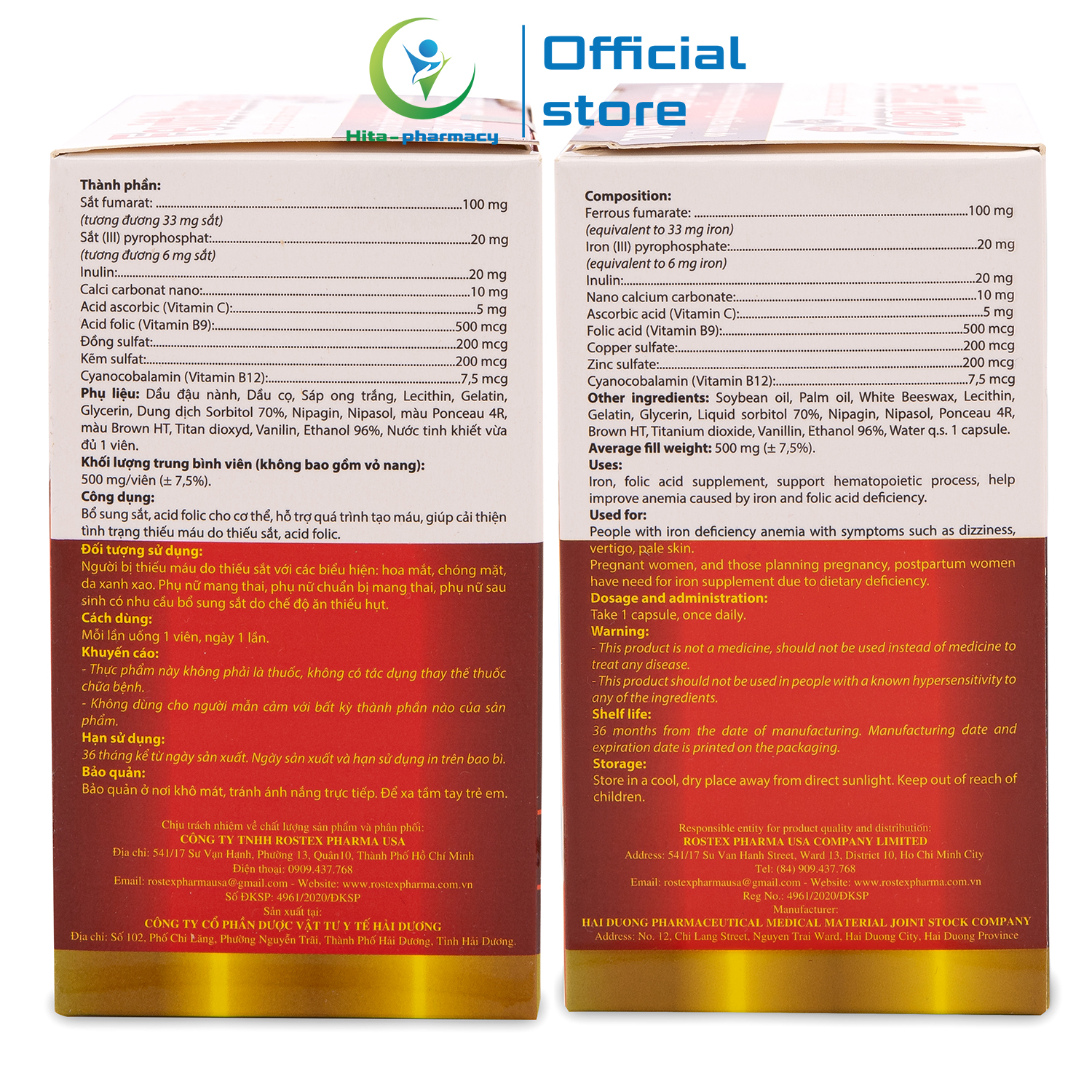 - Thương nhân chịu trách nhiệm sản phẩm: CÔNG TY TNHH ROSTEX PHARMA USA