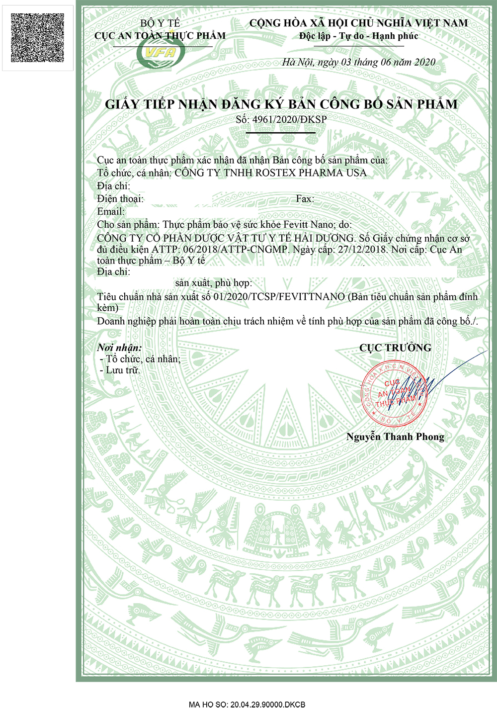 - XNCB : 12465/2019/ĐKSP