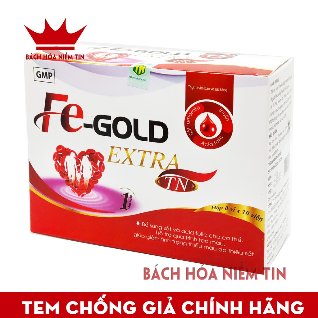Viên Bổ máu FE GOLD EXTRA Bổ sung sắt, Acid Folic cho bà bầu và người thiếu máu - Hộp 80 viên - Chuẩn GMP