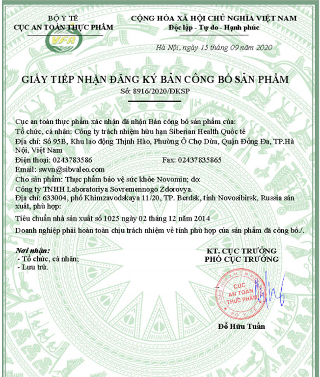 NOVOMIN - Thực phẩm bảo vệ sức khỏe Nga