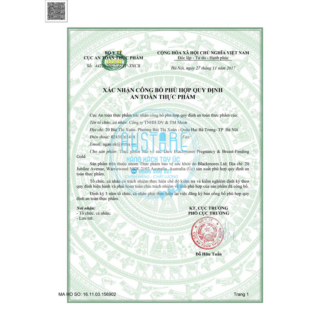 Lượng vitamin & khoáng chất được tích hợp trong bà bầu blackmore đã được nghiên cứu & kiểm chứng hoàn toàn thích hợp cho cơ địa của phụ nữ đang mang thai giúp họ hấp thu dễ dàng, chuyển hóa nhanh chóng, an toàn cho cả mẹ & bé.