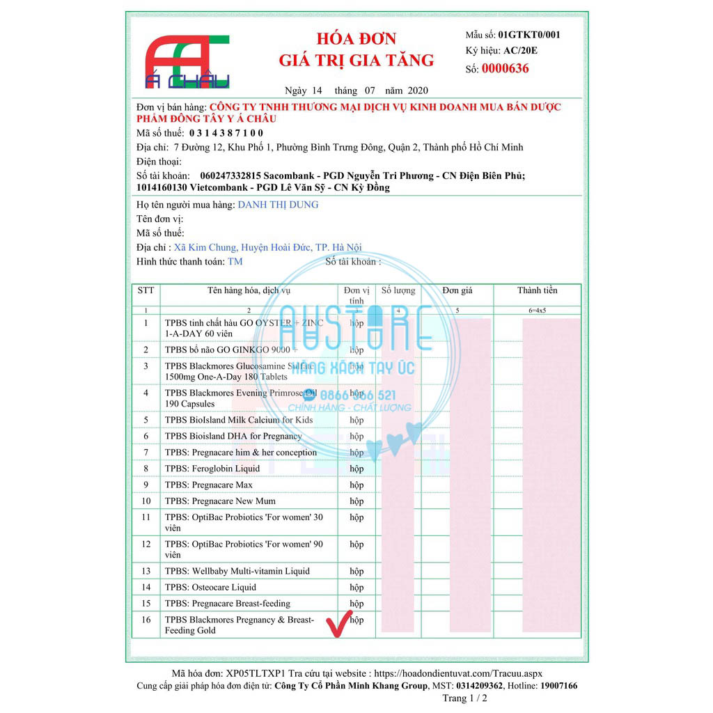 Vitamin tổng hợp cho mẹ bầu Blackmores Pregnancy Gold [CHÍNH HÃNG 1 đổi 1] Bổ sung đầy đủ dưỡng chất thay kì (180 viên)