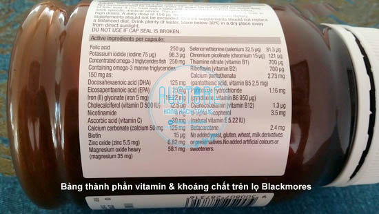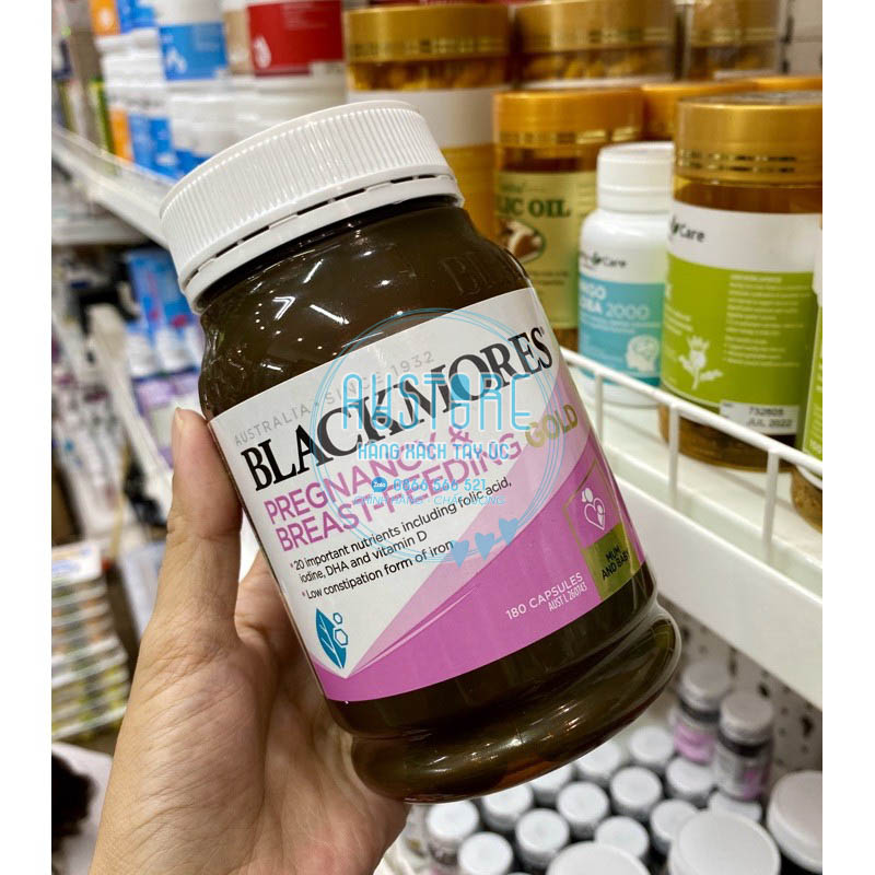 - Viên uống bà bầu Blackmore là vitamin bầu tổng hợp nổi tiếng của hãng Úc được thiết kế với công thức đặc biệt bổ sung 20 vitamin và khoáng chất cần thiết cho mẹ và thai nhi gồm axit folic, iốt, DHA và vitamin D3, sắt...