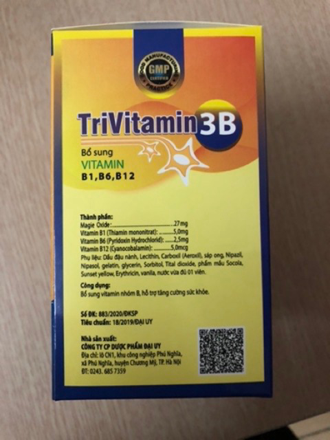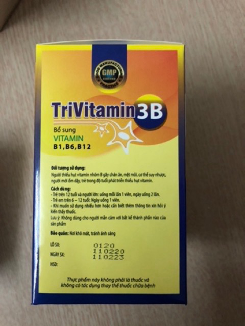 Trivitamin 3b bổ sung vitamin (b1 b6 b12), sản phẩm có nguồn gốc xuất xứ rõ ràng, đảm bảo chất lượng, dễ dàng sử dụng