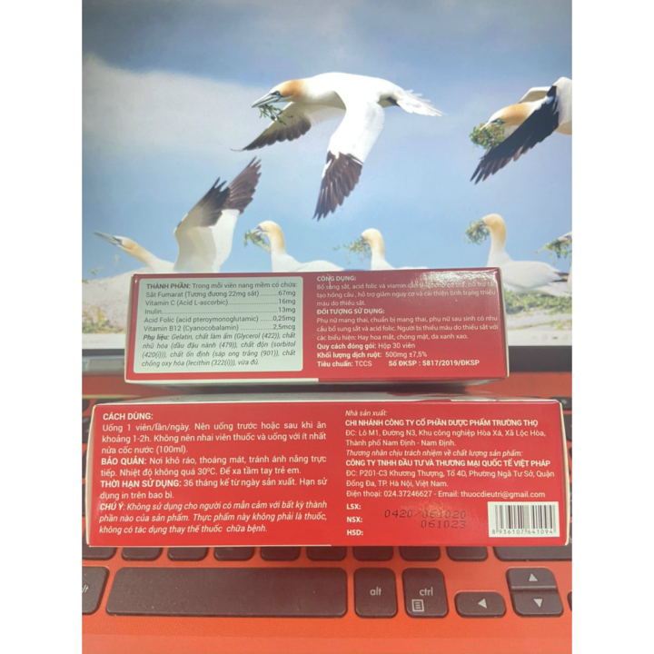 Quy Cach : hộp 30vienHộp 30v iên– thành phần + Fe Fumarat : g + Fe (III) polymaltose : mg + Acid folic : mcg + Vitamin C :mg + vitamin B12 39.000đ
