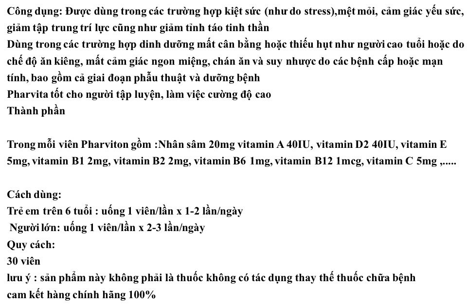 (Chính Hãng) Pharvita Plus Bổ Sung Vitamin Và Khoáng Chất nhanh chóng hiệu quả Lọ 30 viên chính hãng