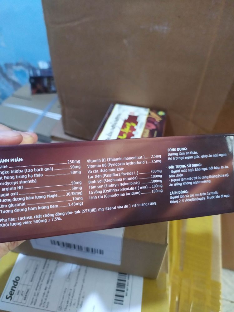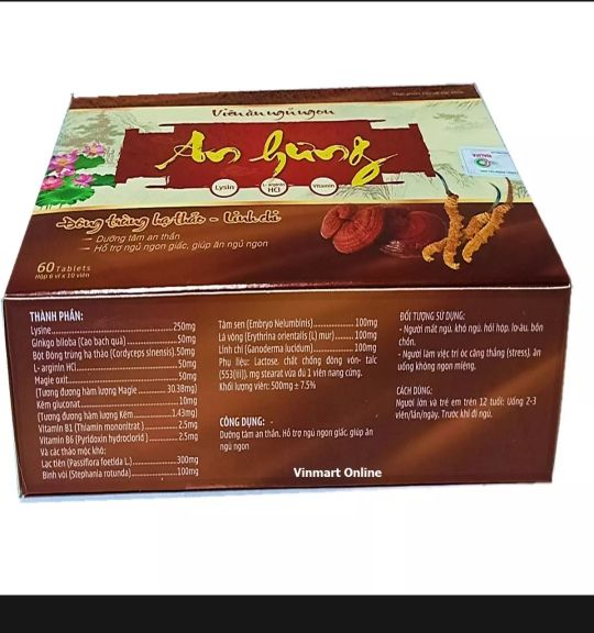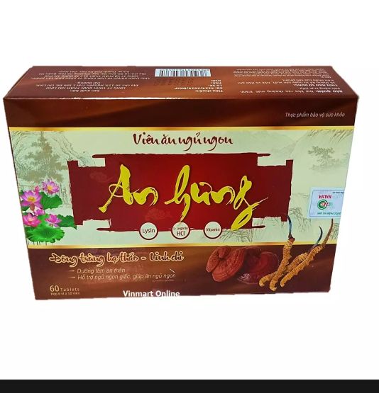 Viên Ăn Ngủ Ngon Dưỡng tâm an thần giúp ăn ngon ngủ ngon hộp 60 viênCông dụngHỗ trợ dưỡng tâm an thần, giúp ngủ ngon sâu giấc. Ăn ngon miệng, bồi bổ cơ thể, tăng cường sức khoẻ. Đối tượng sử dụng Người suy nhược cơ thể mệt mỏi ăn uống kémNgười mất ngủ, ngủ không ngon giấcNgười căng thẳng thần kinhCách dùngNgười lớn uống lần 1 viên ngày uống 1-2 lần. Uống trước khi ngủ 1hBảo quản nơi khô ráo thoáng mát Công ty cổ phần dược phẩm an hung🌞 Sẵn sàng đổi trả hoặc hoàn lại tiền cho khách trong 48h kể từ ngày nhận hàng nếu sản phẩm lỗi hoặc hư hỏng trong quá trình vận chuyển ❤ 🎯 Luôn tư vấn tận tâm, nhiệt tình với tâm của người Bán 🎯Đảm bảo tất cả sản phẩm luôn chính hãng 100%, nguồn gốc xuất xứ rõ ràng. !