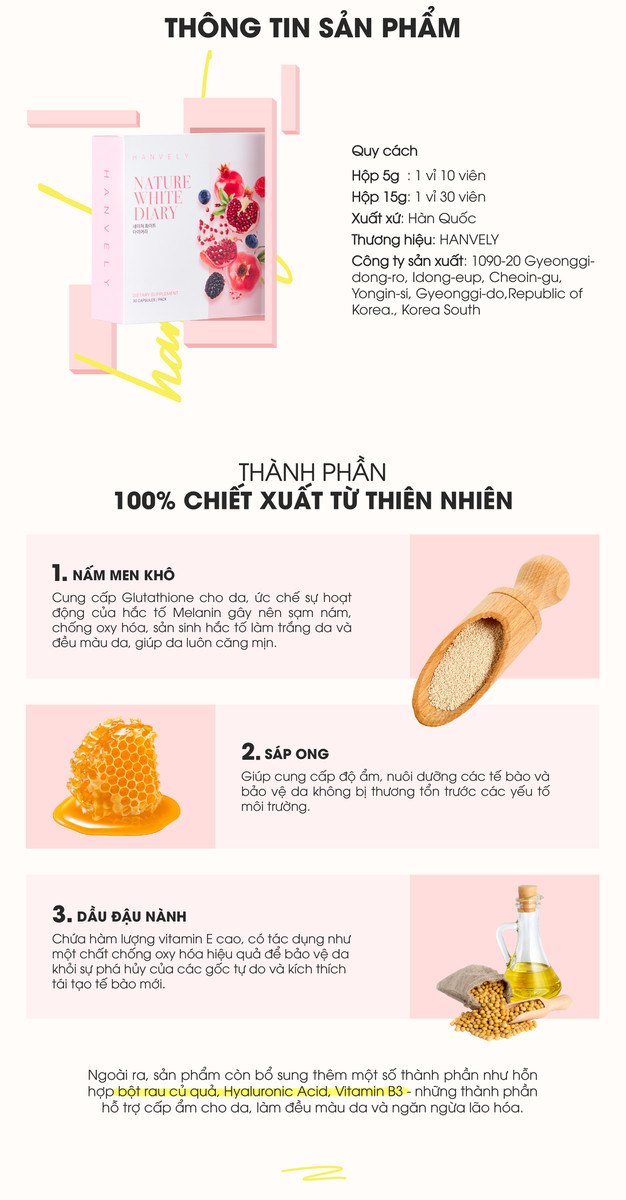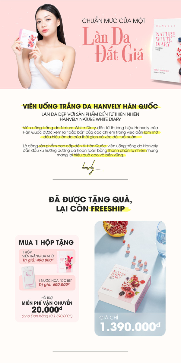 VIÊN UỐNG TRẮNG DA HÀN QUỐC HANVELY - DA ĐẸP KHÔNG TÌ VẾT VỚI SẢN PHẨM TỪ THIÊN NHIÊN
