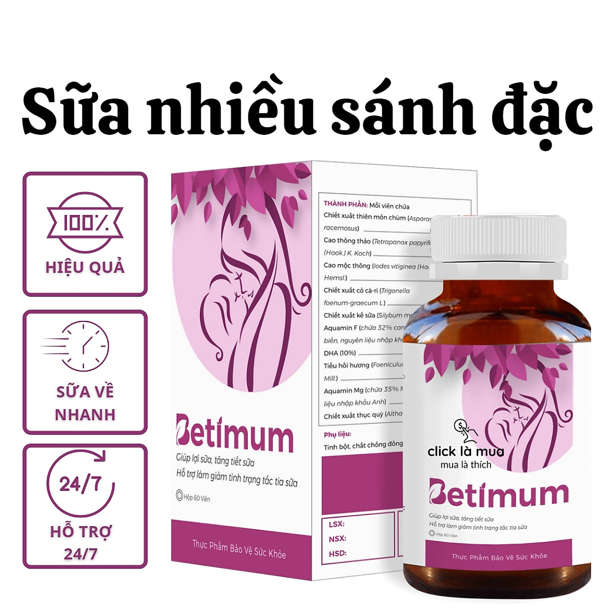 ✅Công dụng: 2.1. Cốm lợi sữa dạng viên BETIMUM có tác dụng lợi sữa, thúc đẩy quá trình sản xuất sữa, tăng tiết sữa.Giảm tình trạng tắc tia sữa, thông tắc tia sữa, giúp lượng sữa về nhanh, đều đặn, sánh đặc và thơm ngon hơn chỉ sau từ 3-5 ngày sử dụng.2.2. Cốm lợi sữa dạng bột BETIMUM M có công dụng cải thiện tâm trạng, tinh thần, hỗ trợ cải thiện chất lượng giấc ngủ, giúp giảm căng thẳng, giảm stress. Hỗ trợ cải thiện rối loạn cảm xúc, tinh thần ở cả bé và mẹ. Hỗ trợ tăng tiết sữa, tăng cường sức khỏe, giảm căng thẳng thần kinh và ngăn ngừa tình trạng trầm cảm cho phụ nữ sau sinh. Ngoài ra còn có tác dụng kháng khuẩn, chống viêm, tăng cường tái tạo tế bào, giúp vết rạch tầng sinh môn mau lành sẹo.