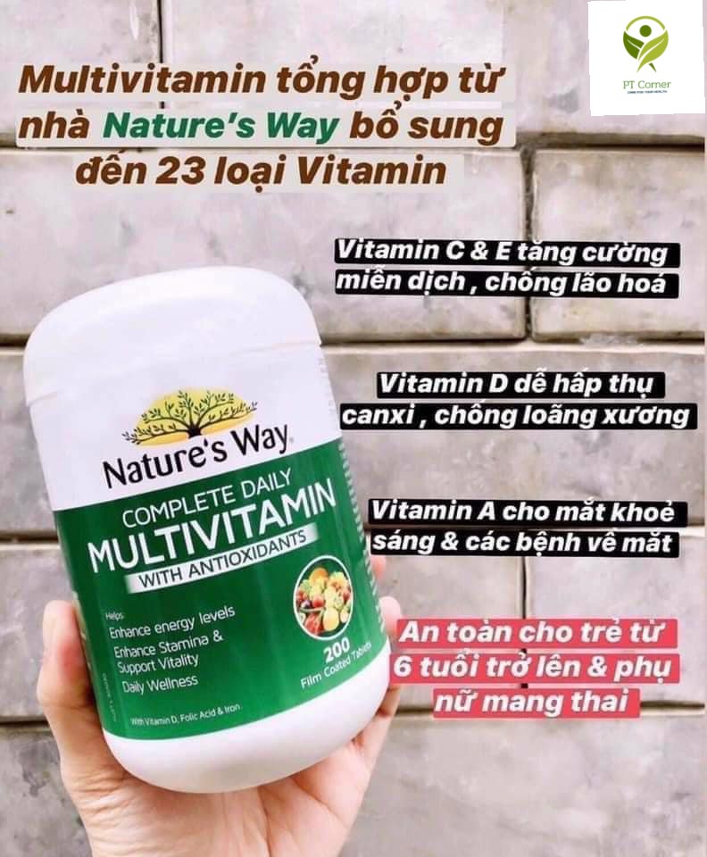 Vitamin Tổng hợp Nature’s Way Complete Daily Multivitamin Úc 200 Viên bổ sung 23 loại vitamin, khoáng chất cho cả gia đình của bạn.