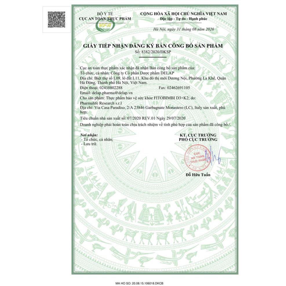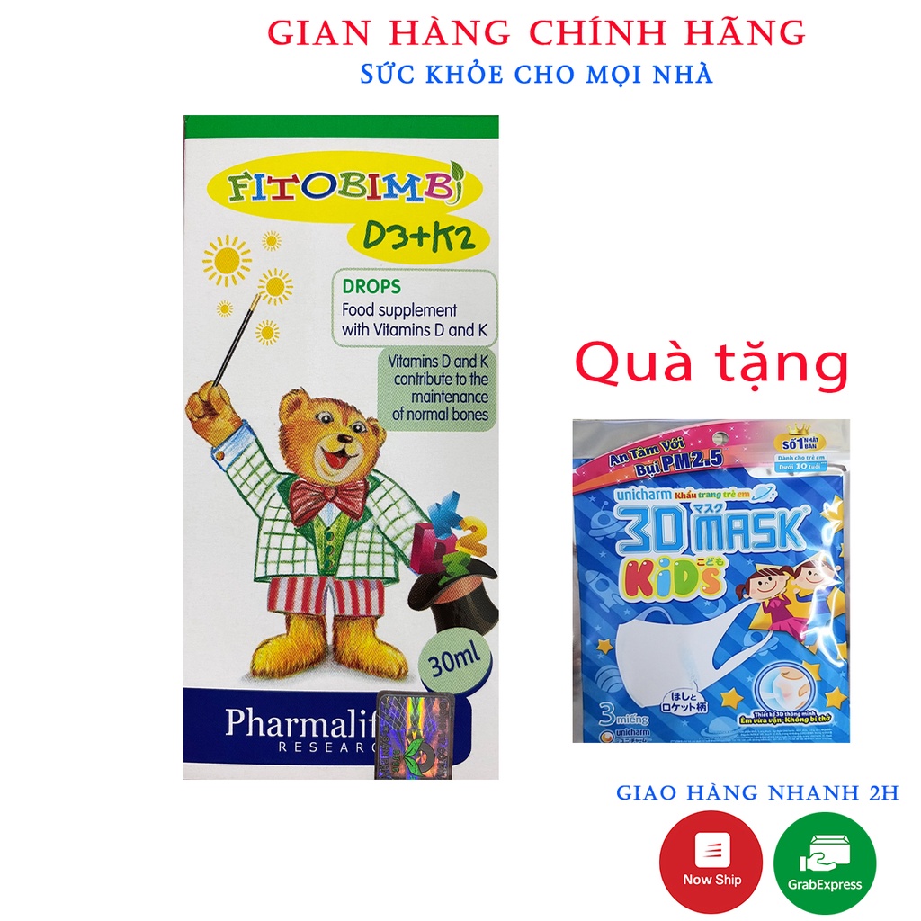 Fitobimbi D3+K2.Bổ Sung Vitamin D3K2 Giúp Hấp Thụ Canxi Vào Xương Răng Chắc KhỏeCÔNG DỤNG- Bổ sung vitamin D3 và vitamin K2, gi� 350.000đ