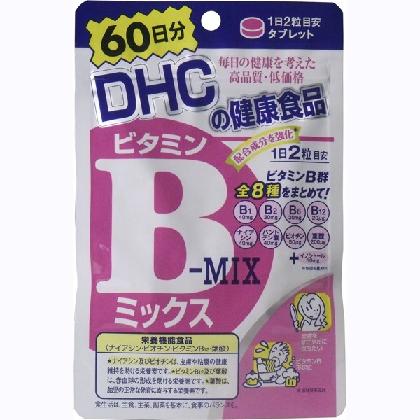 - Viên uống Vitamin B MIX DHC là dạng vitamin đội ngũ B như: B1,B2,B6,B12...giúp bổ sung toàn diện Axit pantothenic , Biotin , Inositol , 8 chiếc Axit Folic