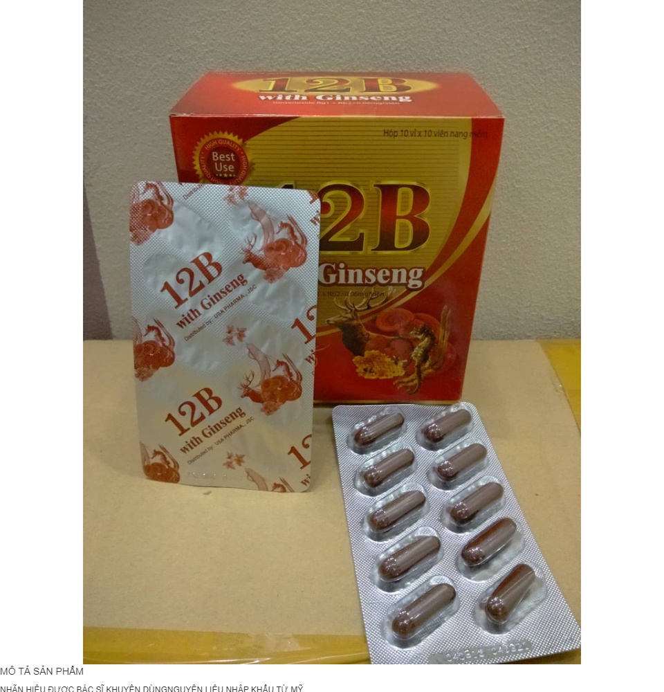 VIÊN UỐNG 12B WITH GINSENG PHỤC HỒI SỨC KHỎE - NÂNG CAO TRÍ LỰC - BỒI BỔ CƠ THỂ - BỔ SUNG CÁC VITAMIN - HỘP 100 VIÊN