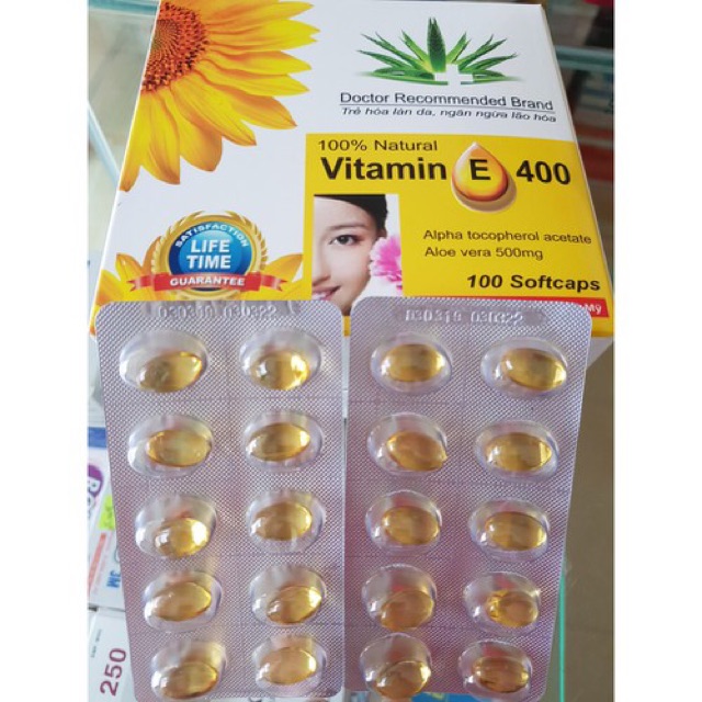 Viên uống đẹp da Vitamin E 400 kèm tinh chất nha đam - Hộp 100 viênSản phẩm này không phải là thuốc và không có tác dụng 39.000đ