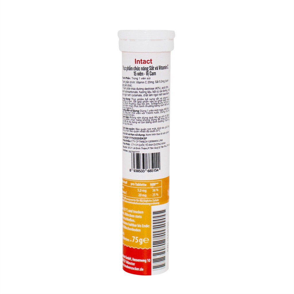 Intact - Lọ 15 viên - Vị Cam - Bổ sung Sắt và Vitamin C.
