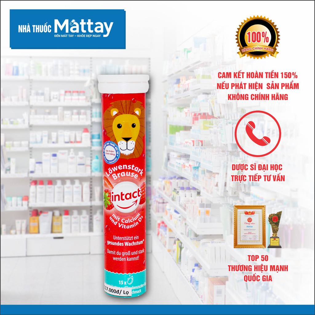⭐️ Hệ thống nhà thuốc Mát Tay rất vui vì bạn đã tham quan cửa hàng của chúng tôi. Chúng tôi cam kết tất cả các sản phẩm của Hệ thống nhà thuốc Mát Tay phân phối 100% sản phẩm chính hãng, giá bán chuẩn nhất thị trường, nếu bạn phát hiện sản phẩm của chúng tôi cung cấp không phải chính hãng chúng tôi xin hoàn gấp đôi số tiền mà bạn đã đặt mua tại cửa hàng của chúng tôi. Trong quá trình sử dụng sản phẩm bạn có thắc mắc hoặc cần tư vấn về sức khỏe hay sản phẩm xin vui lòng gọi qua zalo số điện thoại 0907003501 hoặc 0384856772 đội ngũ dược sĩ đại học trên 10 năm kinh nghiệm của chúng tôi rất vinh dự được phục vụ bạn.⭐️ Quy cách : Lọ 15 viên.⭐️ Xuất xứ : ⭐️ Thành phần : Intact Calcium & Vitamin D3 là viên sủi vị dâu tây bổ sung Canxi và Vitamin D3 giúp chắc xương, phát triển & tăng trưởng xương khớp, góp phần tăng cường hệ thống miễn dịch ở trẻ em. Sản phẩm viên sủi có hình dáng bắt mắt, hương vị dâu tây thơm mát kích thích bé sử dụng mỗi ngày.✅ THÀNH PHẦNTrong 01 viên sủi có chứa:Thành phần chính: Vitamin D3 10μg, Canxi 120 mg (bổ sung dưới dạng canxi carbonate);Thành phần khác: Dextrose, acid citric, natri hydrocarbonate, bột củ cải đường, natri cyclamate, maltodextrin, natri saccharin.✅ CÔNG DỤNGThực phẩm bổ sung Canxi và Vitamin D cần thiết trong quá trình phát triển thể chất & trí tuệ của trẻ.Tăng cường miễn dịch, góp phần gia tăng sức khỏe.✅ HƯỚNG DẪN SỬ DỤNGSử dụng 1 viên/ ngày, hòa tan với 150ml nước.✅ ĐỐI TƯỢNG SỬ DỤNGDùng cho trẻ em 4 tuổi trở lên.✅ LƯU ÝSản phẩm này không phải là thuốc và không có tác dụng thay thế thuốc chữa bệnh.Tác dụng của sản phẩm tùy thuộc vào cơ địa hấp thu của từng người. 🚫 Chú ý : - Sản phẩm này không phải là thuốc, không có tác dụng thay thế thuốc chữa bệnh. - Không sử dụng cho người có mẫn cảm với bất kỳ thành phần nào của sản phẩm.- Đọc kĩ hướng dẫn sử dụng trước khi dùng.💕 Sản phẩm hiện có bán tại Hệ Thống Mát Tay 💕 o MÁT TAY SỐ 1: 210 BẠCH ĐẰNG, TP QUY NHƠN. o MÁT TAY SỐ 2: 05B TĂNG BẠT HỔ, TP QUY NHƠN. o MÁT TAY SỐ 3: NGÃ 3 ĐIỆN BIÊN PHỦ – TRƯƠNG VĨNH KÝ, TP QUY NHƠN. o MÁY TAY SỐ 6: 03 LÊ THANH NGHỊ, KHU BẮC SÔNG HÀ THANH, TP QUY NHƠN. Điện thoại: 0907.033.501 – 0384.856.722.[mát tay online]