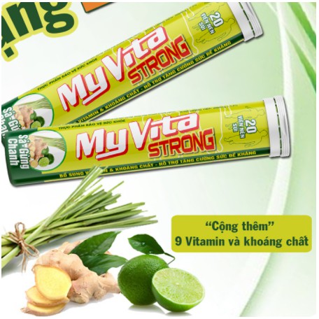 Viên Sủi Myvita Strong Sả-Gừng-Chanh - Vitamin C - Vitamin B- Kẽm Tăng Sức Đề Kháng Cơ Thể - Tuýp 20 viên