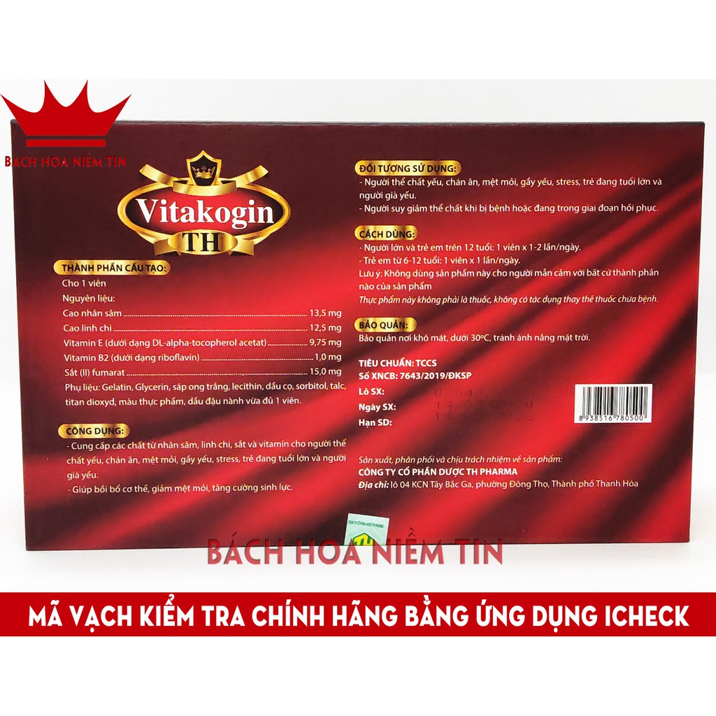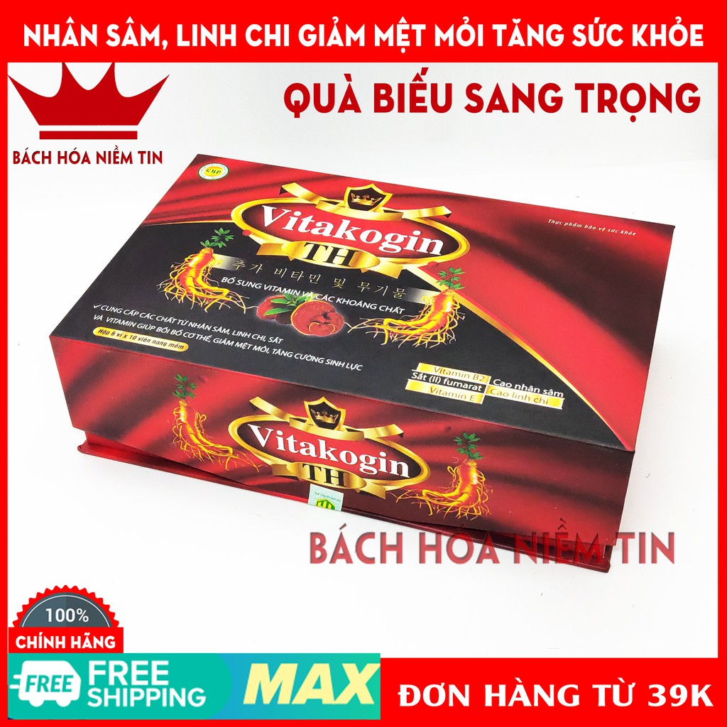 Viên uống VITAKOGIN TH - Thành phần nhân sâm, linh chi giúp bồi bổ cơ thể, giảm mệt mỏi, tăng cường sinh lực - Hộp Sang 195.000đ