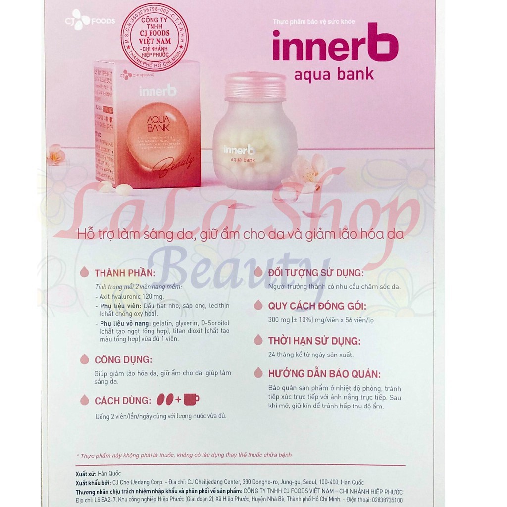 ( sốc )VIÊN UỐNG CẤP NƯỚC VÀ COLLAGEN INNERB AQUA RICHSản phẩm này không phải là thuốc, không có tác dụng thay thế thuốc Xuất sứ : Hàn Quốc. Mẫu mới: 500mgx70Viên & 500mg x56ViênNgoài việc giúp bạn bổ sung nước cho da, Inner Aqua Rich còn giúp bổ sung Collagen tăng cường độ đàn hồi, giúp da bóng đẹp. Mỗi ngày chỉ cần 2 viên là yên tâm cho cả ngày dài năng động.Viên Uống Innerb Aqua rich bổ sung Collagen cấp nước và chống hiện tuợng da mất cân bằng độ ẩm. Dùng cho tất cả mọi loại da, kể cả da dầu bởi hơn hết da dầu cần cấp nuớc nhất nhé.Kết quả làm căng bóng trắng sáng giúp da cấp nước đủ, môi không khô nứt , từ khuỷ chân tay đều mịn mượt. cảm nhận rõ rệtHướng dẫn:- Uống 2 viên Innerb mỗi ngày trong tháng đầu tiên -Tháng thứ 2 : uống mỗi ngày 1 viên .- Uống liên tục 3 tháng thì nghỉ 1 tháng.#innerb #innerbaquarich #vienuongcapnuoc #vienuongcapnuocaquarich #vienuongcapnuocinnerb#viênuốngcấpnước