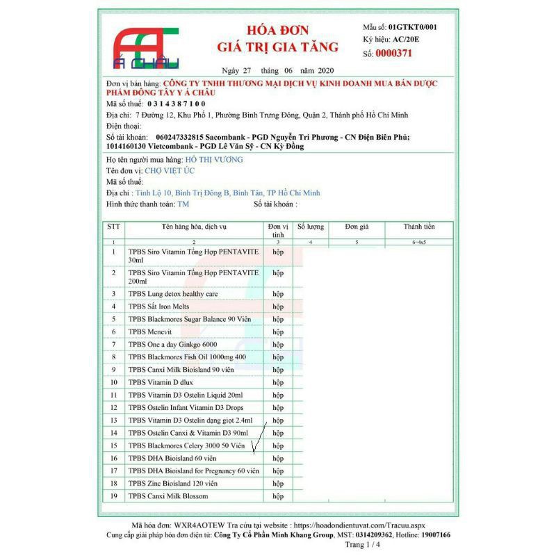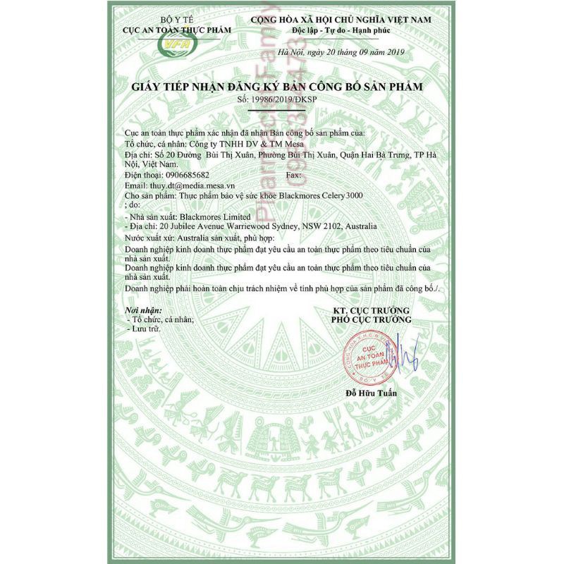 Viên uống phòng ngừa và hỗ trợ điều bệnh gout gút Blamores celery 3000 mg Lọ 50 viên - Úc