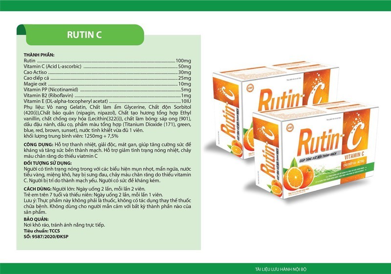 Viên Uống Rutin C - Giúp THanh Nhiệt Giải Độc, Mát Gan,Tăng Sức Đề Kháng Và Bền Thành Mạch - Viên Uống Rutin C- Hải Linh