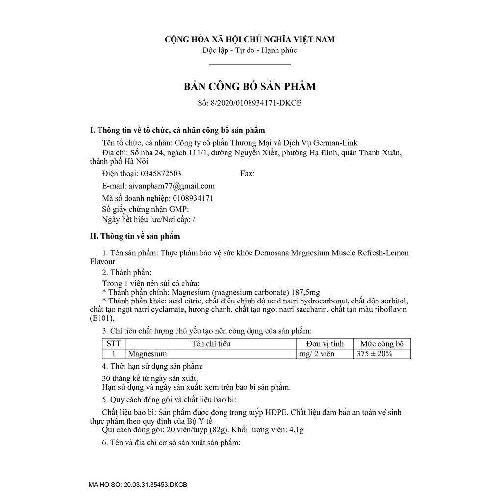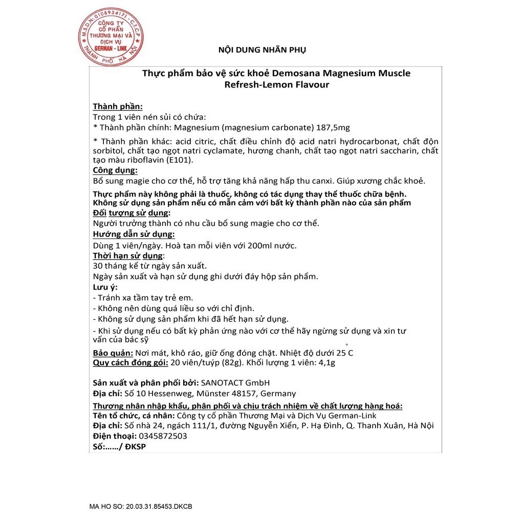 Demosana Magnesium Muscle Refresh - Viên Sủi Bổ Sung Magnesium - Tổng Kho MiềnNam