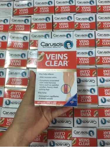 - Các thành phần Ruscus, Vitamin C và Hesperin có trong viên uống Caruso’s Veins Clear giúp phục hồi chức năng thành mạch, làm giảm nguy cơ hình thành bệnh suy giãn tĩnh mạch