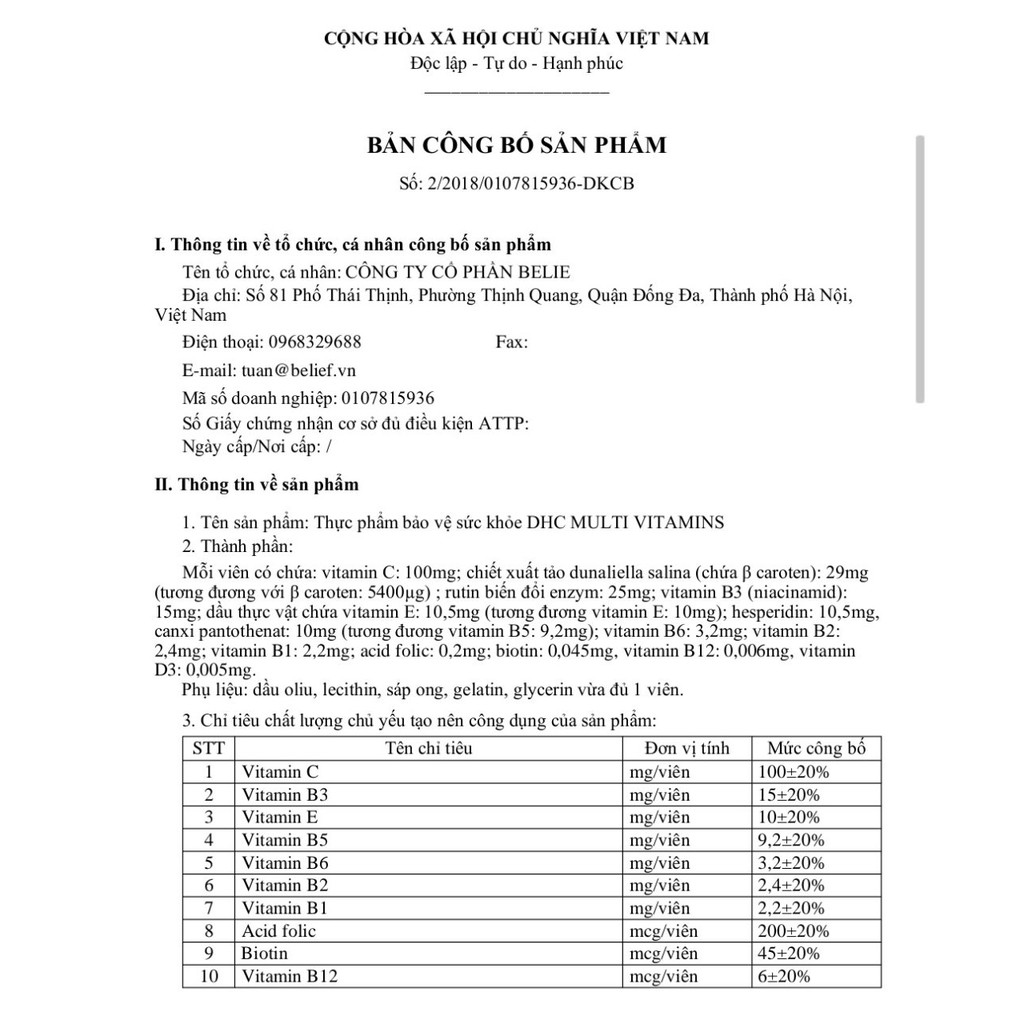 Viên Uống Dhc Vitamin Tổng Hợp Multivitamins Nhật Bản Bon91