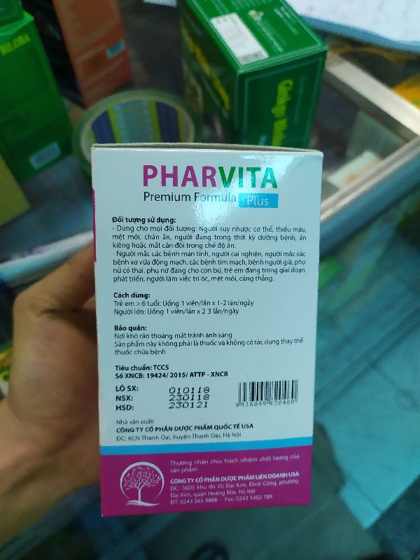 BỒI BỒ CƠ THỂ PHARVITA PLUS 100 ViênCông dụng: Bổ sung vitamin và các khoáng chất cần thiết cho cơ thể , tăng cường sức đề kháng, giảm nguy cơ mắc bệnh tim mặt, máu lên não, bổ sung sắt cho cơ thể. Ngăn ngừa xơ vỡ động mạch.Được dùng trong các trường hợp kiệt sức (như do stress),mệt mỏi, cảm giác yếu sức, giảm tập trung trí lực cũng như giảm tỉnh táo tinh thần Dùng trong các trường hợp dinh dưỡng mất cân bằng hoặc thiếu hụt như người cao tuổi hoặc do chế độ ăn kiêng, mất cảm giác ngon miệng, chán ăn và suy nhược do các bệnh cấp hoặc mạn tính, bao gồm cả giai đoạn phẫu thuật và dưỡng bệnhPharvita tốt cho người tập luyện, làm việc cường độ caoThành phần Trong mỗi viên Pharviton gồm :Nhân sâm 20mg vitamin A 40IU, vitamin D2 40IU, vitamin E 5mg, vitamin B1 2mg, vitamin B2 2mg, vitamin B6 1mg, vitamin B12 1mcg, vitamin C 5mg ,.....DHA ,kali, đồng, kẽm .....Vitamin A, vitamin D3, Cách dùngTrẻ em trên 6 tuổi : uống 1 viên/lần x 1-2 lần/ngày Người lớn: uống 1 viên/lần x 2-3 lần/ngàyQuy cách:10 vĩ x 10 viênSản phẩm này không phải là thuốc và không có tác dụng thay thế thuốc chữa bệnhSX TẠI CTY CP DP LD HIGHTECH USA VN.#PHARVITA_PLUS_100Viên #stress #mệt_mỏi, #cảm_giác_yếu_sức, #giảm_tập_trung_trí_lực #ăn_kiêng#pharvita#pharvita_traicay#pharvita_sắt