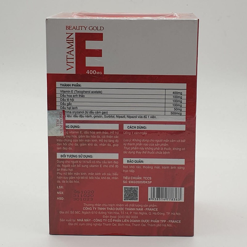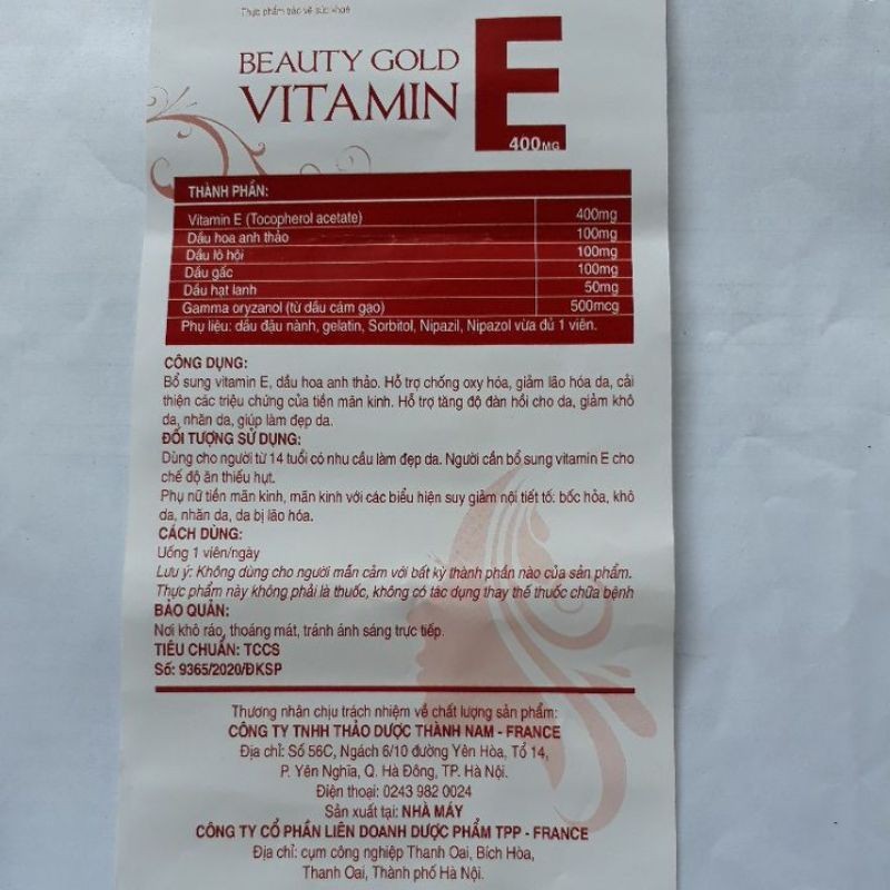 Viên uống đẹp da Vitamin E Beauty Gold 400mg hộp 30 viên