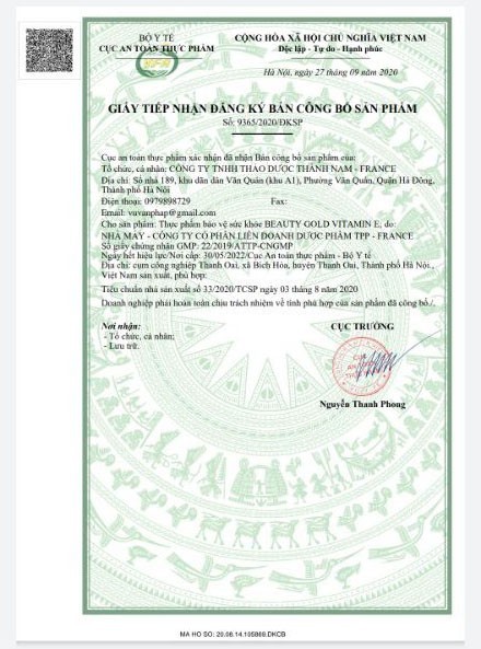 Phụ liệu: Dầu đậu nành, gelatin, Sorbitol, Nipazil, Nipazol vừa đủ 1 viên.