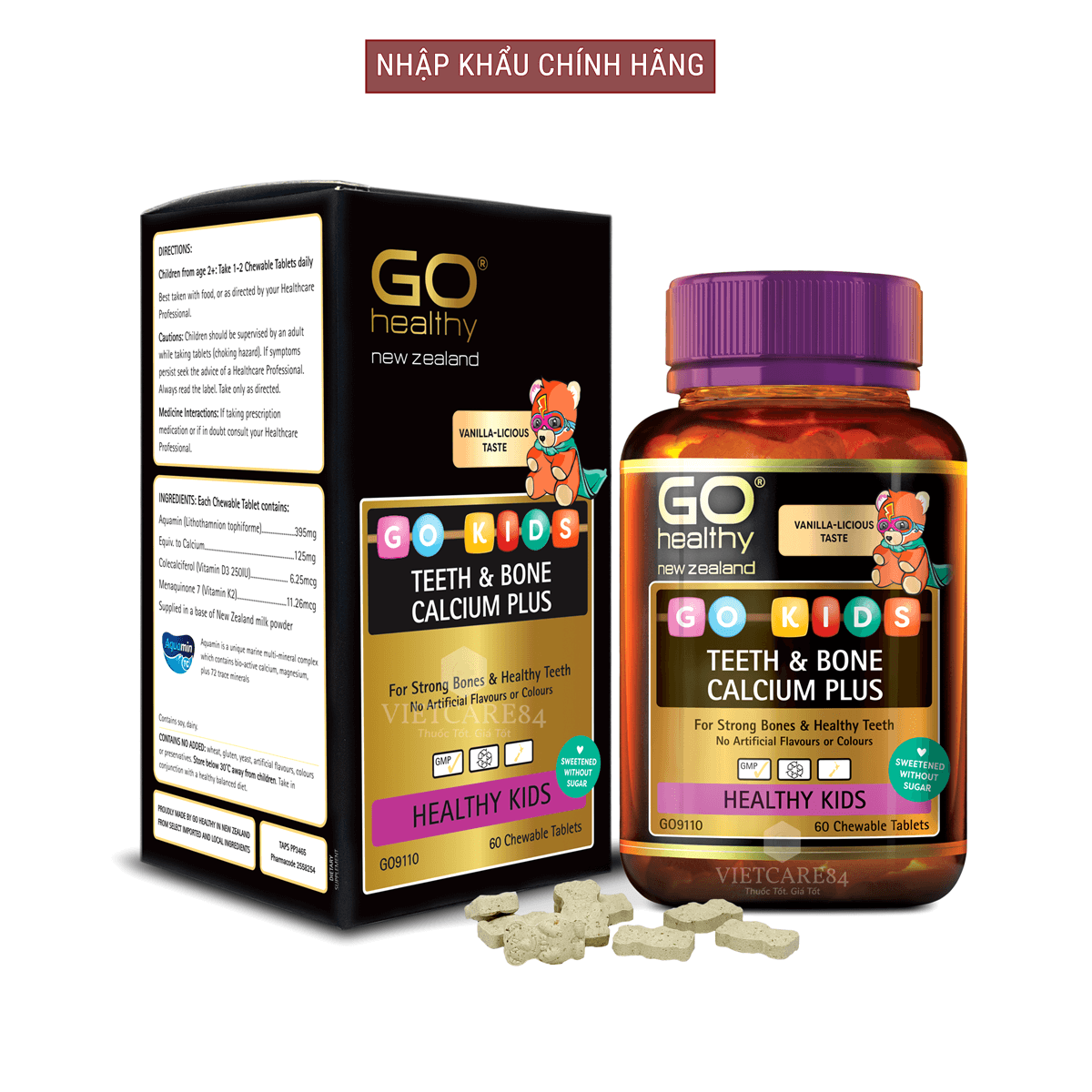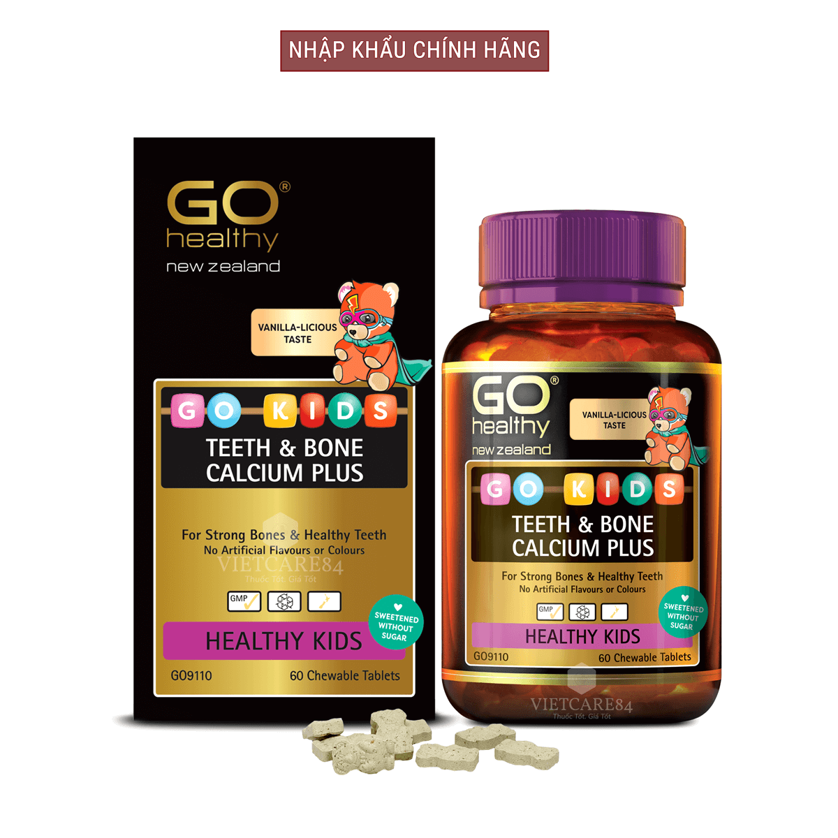 Viên nhai canxi cho bé nhập khẩu chính hãng New Zealand GO KIDS TEETH & BONE CALCIUM PLUS (60 viên) giúp bổ sung canxi, vitamin D3 và vitamin K2 hỗ trợ xương, răng chắc khỏe , tăng chiều cao tối đa, giảm nguy cơ loãng xương