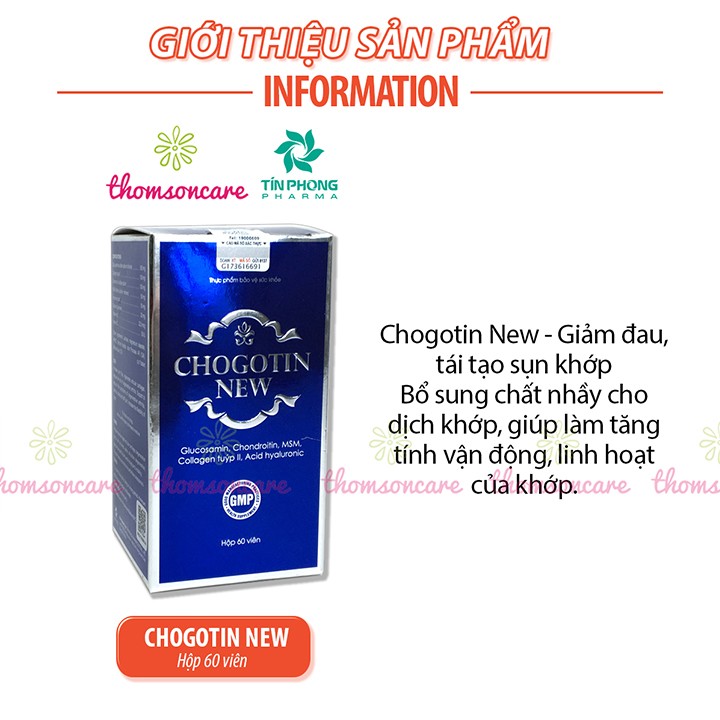Xương khớp Chogotin New hỗ trợ người có vấn đề về khớp đau nhức hạn chế vận động tổn thương mô sụn khớp bổ sung chất nhầy dịch khớp tăng tính vận động linh hoạt bảo vệ giúp chắc khỏe xương