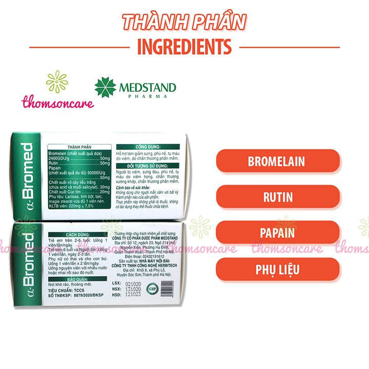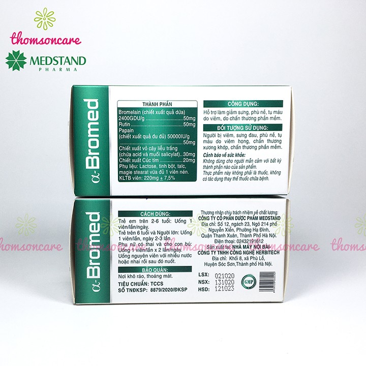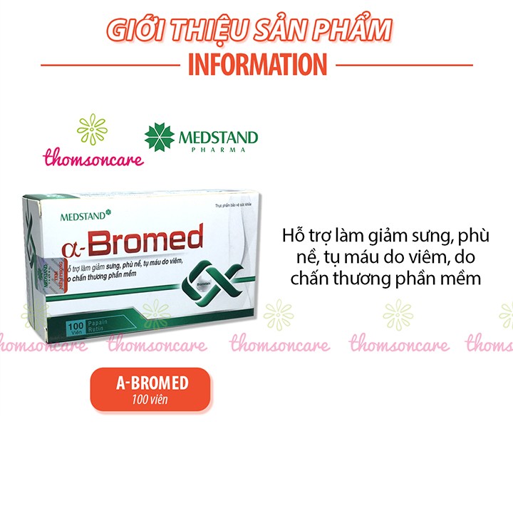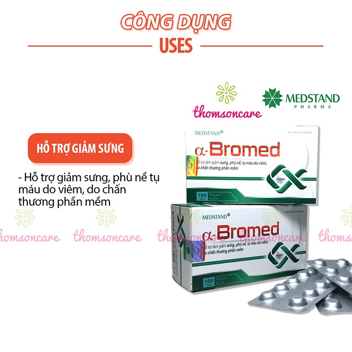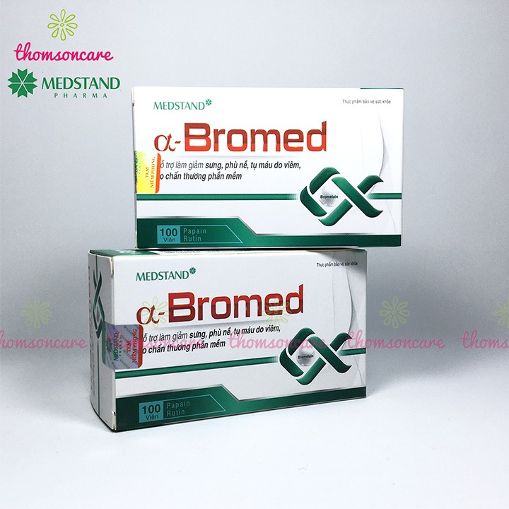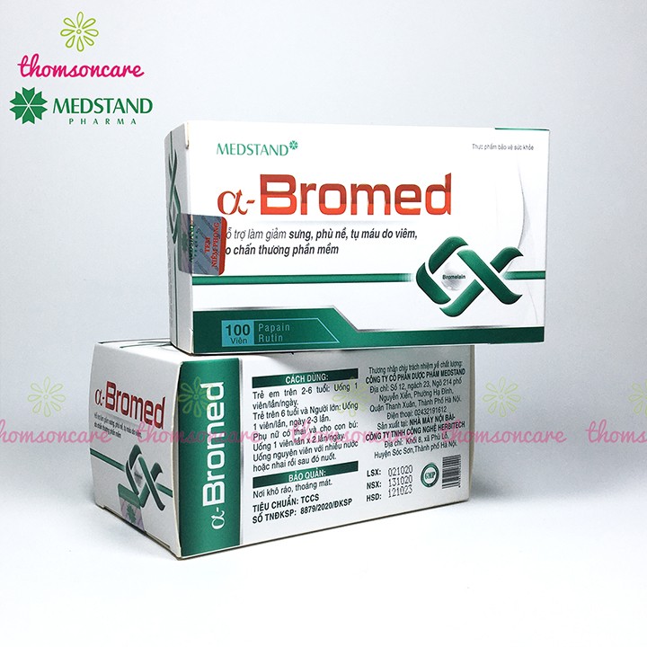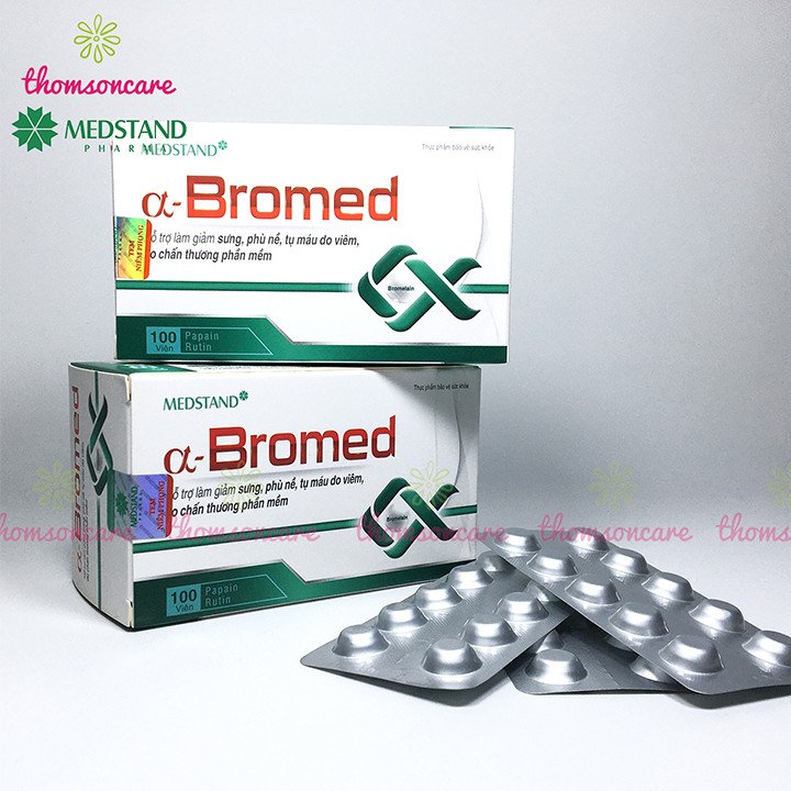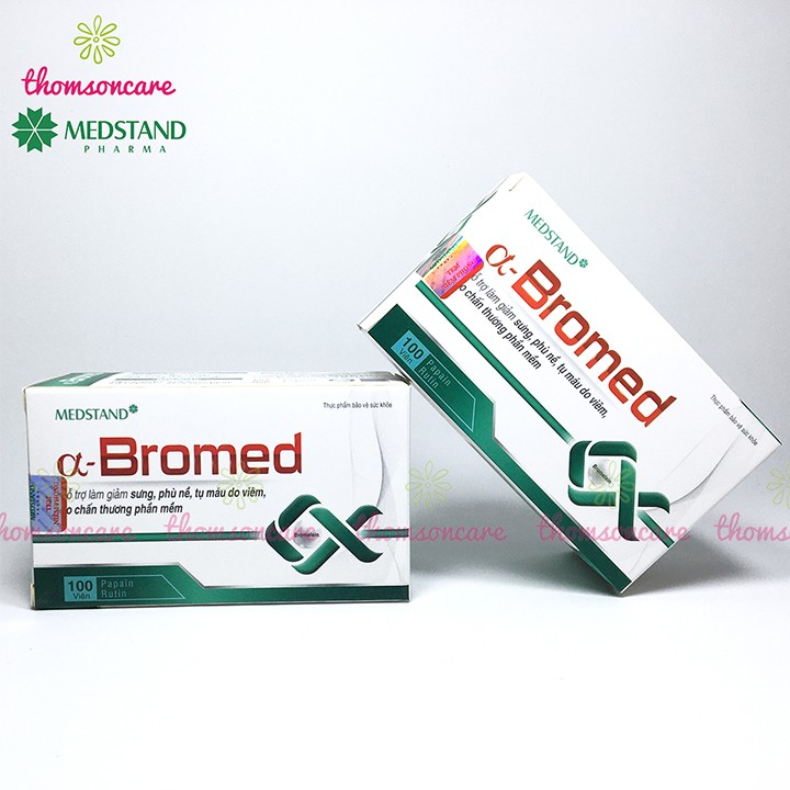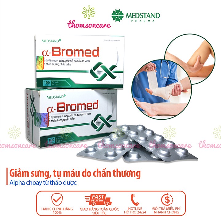 Medstand Alpha Bromed giảm sưng tụ máu hộp 100 viên hỗ trợ hết tụ máu bầm ở đầu chân dưới da giảm phù nề cánh tay vết bầm tím dưới da chấn thương gân kheo cổ tay phần mềm bắp bàn chân xương khớp tan máu bầm thành phần thảo dược