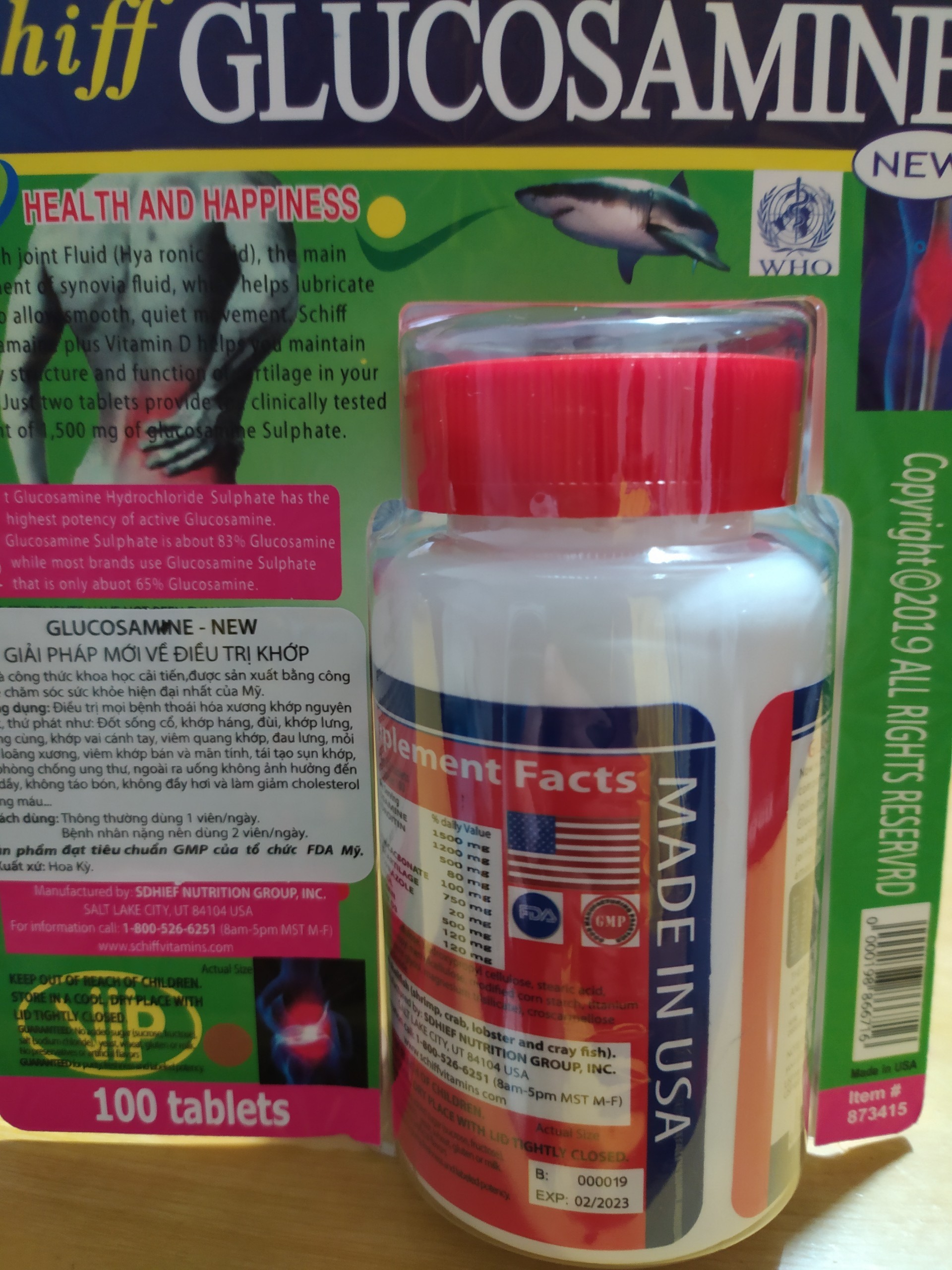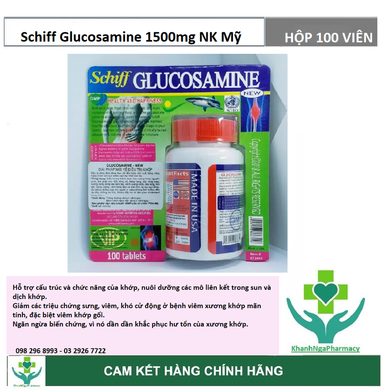 - Thành phần chính: Glucosamine 1500 mg, Chondroitin 1200 mg, Shark Cartilage 750 mg, MSM 500 mg, Vitamin D3 120 mg, Sorbitol 500 mg, Lansoprazole 20 mg....- Công dụng: Bổ sung chất nhờn cho khớp, hỗ trợ điềuTR viêm khớp, thoái hóa khớp. Bổ sung thêm MSM và vitamin D3 giúp xương chắc khỏe và phòng chống loãng xương. Đặc biệt có sự kết hợp thêm thành phần Sorbitol và Lansoprazole làm giảm tác dụng phụ của thuốc đối với hệ tiêu hóa giúp thuốc hấp thu tốt hơn mà không ảnh hưởng đến dạ dày.- Cách dùng: Ngày uống 2 lần. 1 lần uống 1 viên. Uống sau ăn sáng và sau ăn trưa 30 phút. Nên uống liên tục 3 tháng để có hiệu quả tốt nhất.- Xuất xứ: Hàng chuẩn USA.