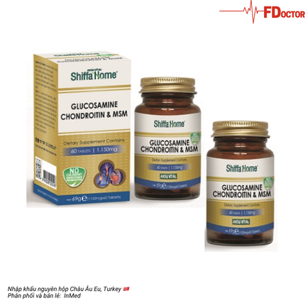 Bộ 2 hộp Glucosamine Shiffa Home 60 viên nhập khẩu Thổ Nhĩ Kỳ Viên Uống Hỗ trợ khi đau viêm nhức xương khớp kích thích tiết nhờn bôi trơn khớp Nhập Khẩu Châu Âu EU