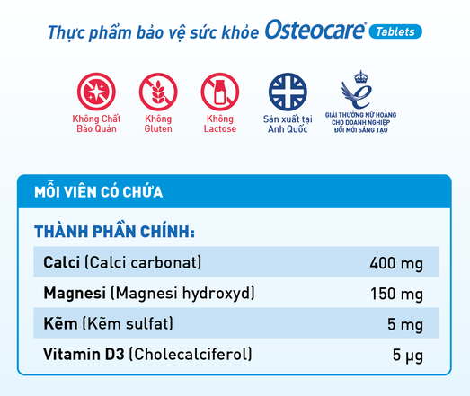 Thực phẩm bảo vệ sức khỏe OSTEOCARE Tablets - Hỗ trợ xương chắc khỏe - HÀNG CHÍNH HÃNG - CÓ TEM CHÍNH HÃNG - Hộp 30 viên - KÈM QUÀ TẶNG