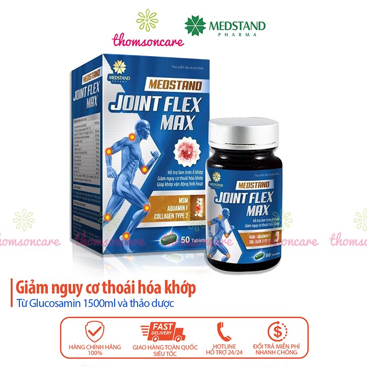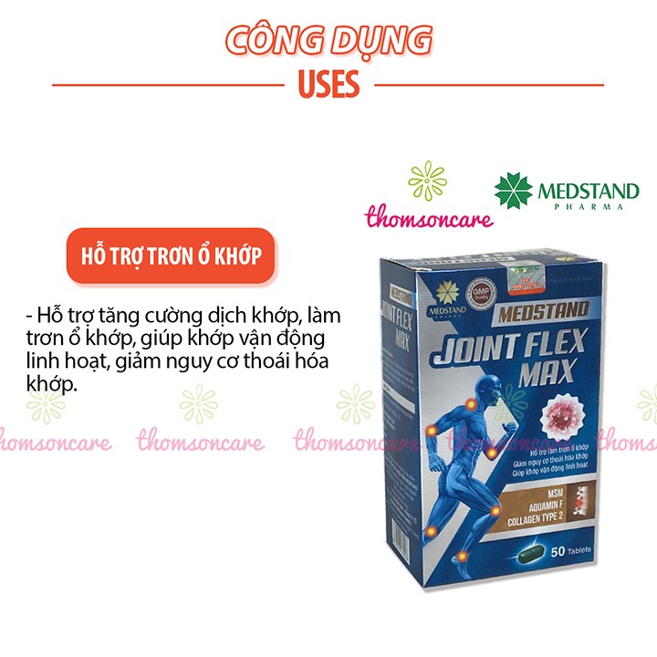 Viên uống Medstand Joint Flex Max hộp 50 viên bôi trơn xương khớp tái tạo sụn giảm loãng xương người cao tuổi xốp xương đau khớp cổ chân sưng đau đầu gối khi làm việc lâu dài ở người già trẻ em thiếu canxi