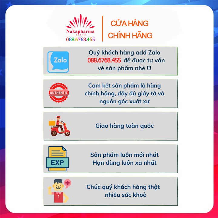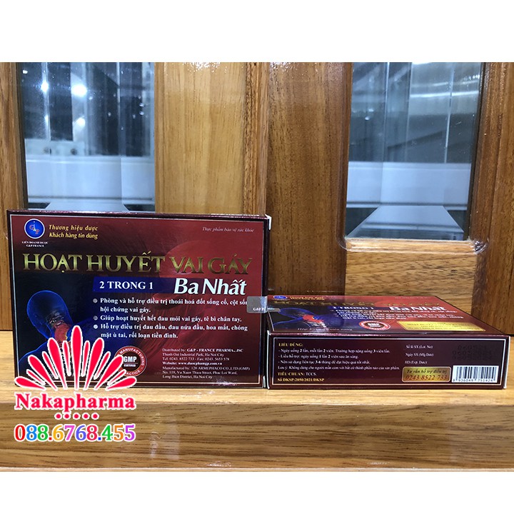 ❤ HOẠT HUYẾT VAI GÁY BA NHẤT – GIÚP GIẢM ĐAU MỎI ĐẦU, VÙNG VAI GÁY, ĐAU NHỨC XƯƠNG KHỚP, TĂNG CƯỜNG LƯU THÔNG KHÍ HUYẾT⭐⭐⭐NAKAPHARMA CHUYÊN PHÂN PHỐI HÀNG CHÍNH HÃNG 👍👍👍►► Kính mời quý khách Chat/Inbox với shop hoặc gọi Hotline 📞088.6768.455 (Zalo/Call) để tư vấn miễn phí về sản phẩm và cách mua hàng nhé 💓🌞🌞🌞 Cần tìm nhanh các sản phẩm khác Quý khách vui lòng liên hệ Hotline 📞088.6768.455 (Zalo/Call) để được bộ phận CSKH hỗ trợ nhé 💖✅ ĐẶC ĐIỂM NỔI BẬT:• Nhãn hàng Hoạt Huyết Vai Gáy Ba Nhất cam kết hoàn lại tiền 100% nếu sau 3 tháng sử dụng sản phẩm không hiệu quả✅ THÀNH PHẦN:• Cao bạch quả, cao sơn dương, citicoline, cao khô bạch chỉ, cao khô phòng phong...v.v🍀 CÔNG DỤNG:• Giúp giảm đau mỏi đầu, vùng vai gáy, tê bì tay chân, đau nhức xương khớp, viêm khớp, thoái hóa đốt sống cổ, đốt sống lưng và dây thần kinh tọa• Giúp hoạt huyết tăng cường lưu thông khí huyết, giảm triệu chứng đau đầu, đau nửa đầu, hoa mắt, chóng mặt, ù tai, rối loạn tiền đình.🙋🏼 ĐỐI TƯỢNG SỬ DỤNG:• Người lưu thông máu kém có biểu hiện đau mỏi vai gáy, tê bì chân tay. Người bị thoái hóa đốt sống cổ, thoái hóa cột sống• Người bị rối loạn tiền đình, đau đầu, hoa mắt, chóng mặt, đau dây thần kinh tọa.👉 CÁCH DÙNG:• Ngày uống 2 lần, mỗi lần 2 viên. Trường hợp nặng uống 3 viên/ lần.• Liều hỗ trợ: Ngày uống 1 lần 2 viên sau ăn sáng.• Nên sử dụng liên tục 3 – 6 tháng để đạt hiệu quả tốt nhất.🎗 QUY CÁCH SẢN PHẨM:• Hộp 3 vỉ x 10 viên nang✅ HẠN SỬ DỤNG:• Xem trên bao bì sản phẩm• Có thể yêu cầu shop chụp hình sản phẩm trước nha!✅ LƯU Ý:• Sản phẩm này không phải là thuốc và không có tác dụng thay thế thuốc chữa bệnh!-----------------------------------------------------👉 Xuất xứ: Việt Nam👉 Sản phẩm của: CÔNG TY CỔ PHẦN LIÊN DOANH DƯỢC G&P FRANCE👉 Địa chỉ: Thôn Thanh Lương, xã Bích Hòa, huyện Thanh Oai, thành phố Hà Nội#nakapharma #gpfrance #hoathuyetvaigaybanhat #hoathuyetvaigay #hoathuyetduongnao #giamdaudau #giammatngu #roiloantiendinh #tebichantay