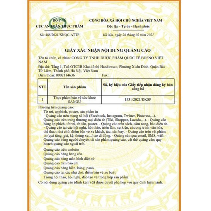 Nhà sản xuất: CÔNG TY CỔ PHẦN DƯỢC PHẨM MEDZAVYXuất xứ: Việt NamGiấy phép: 1531/2021/ĐKSPQuy cách Sangu 1 Hộp 10 gói x 10 860.000đ