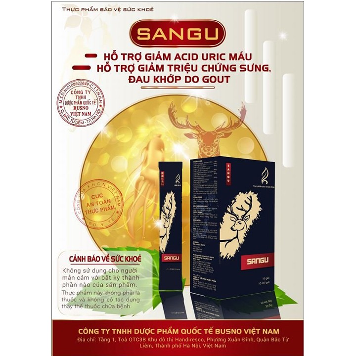 Sangu - Hộp 10 gói - Hỗ trợ giảm gout, giúp giảm triệu chứng sưng, đau nhức do gút - Nhà Thuốc Gia Hân